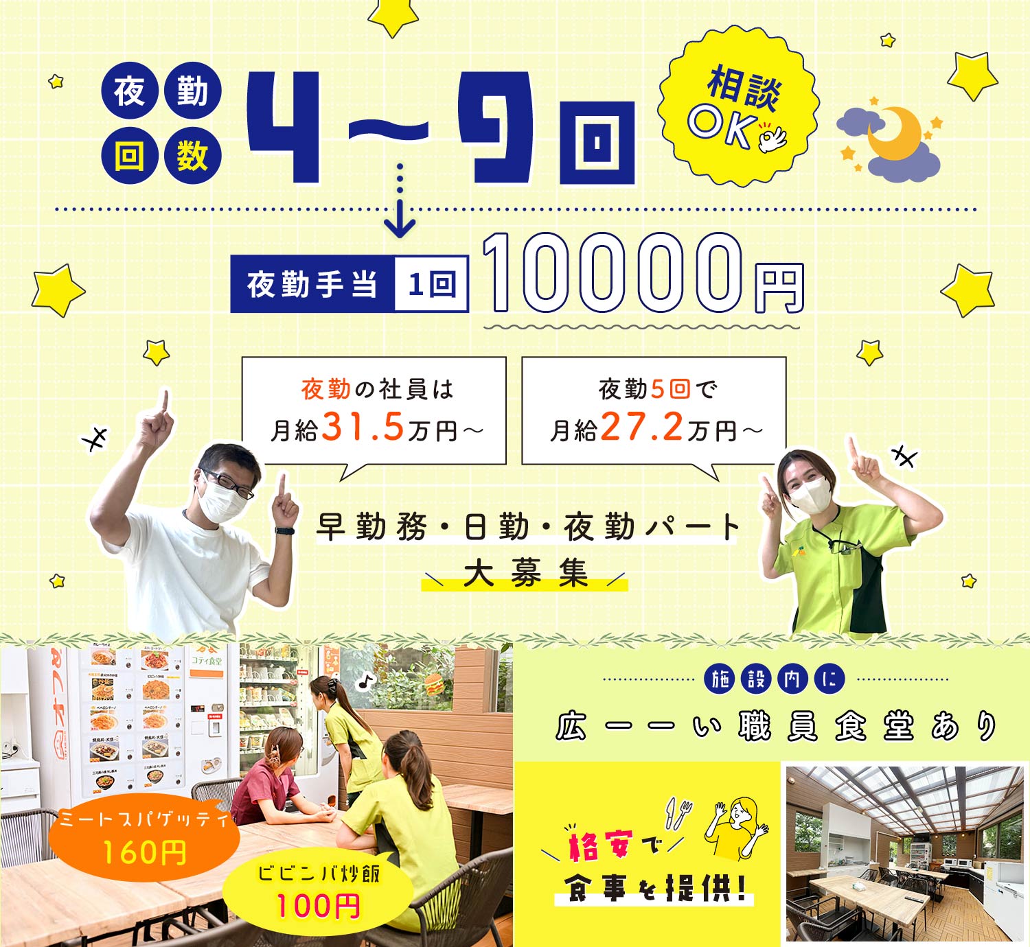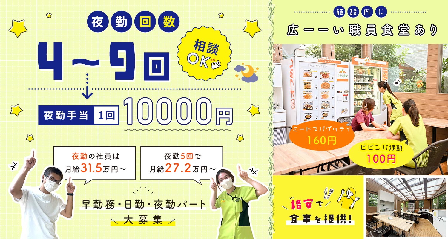 仕事内容 | 夜勤社員の介護職[社] 特別養護老人ホームおよびショートステイでの夜間の介護業務全般。 就寝前のケアや就寝後の見回り、排泄介助などをお願いします。 ★利用者様との距離が近い 特養は利用者様10名の少数制でケアを行うユニット型☆ 従来型の特養では利用者様全員を職員全員で担当する為、お一人おひとりと関わる時間は短くなりがちですが、ユニット型の場合、生活リズム等に合わせながら接することができるので、じっくり時間をかけて、利用者様に向き合えます! |