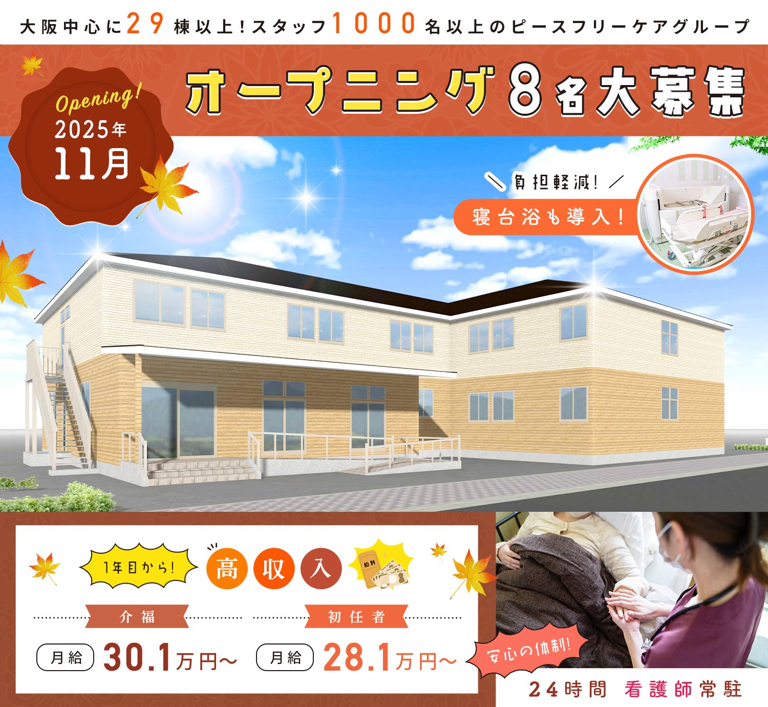 ピースフリー富田林弐番館は2025年11月10日オープンの住宅型有料老人ホーム。