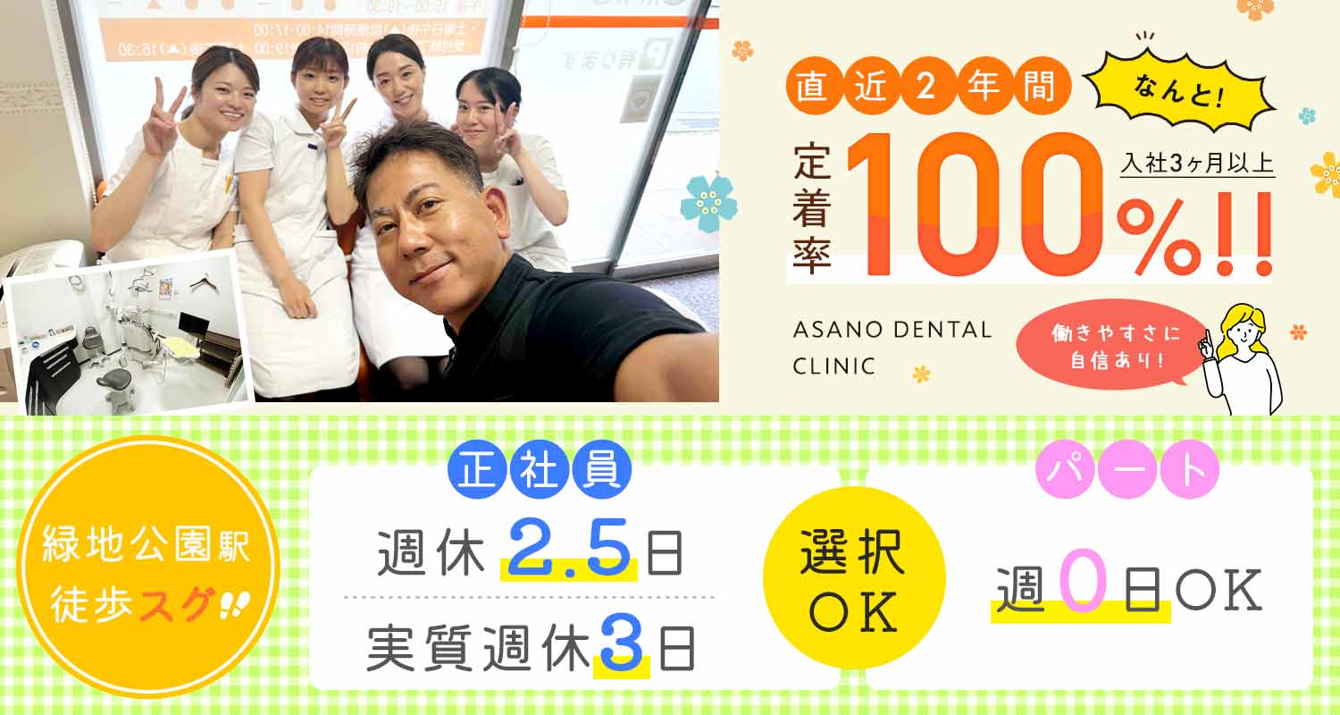 | 仕事内容 | 歯科衛生士/週ゼロ日OK[パ] 歯科予防処置(歯石の除去や薬物の塗布)や歯磨き指導など、衛生士業務全般。 ★衛生士業務に専念できる 歯周病治療に特化しており、予防を大切にしております。 その為、治療から定期メンテナンスへの移行率も高く、 衛生士へのリコールの患者さんが非常に多いので、 衛生士業務に専念して働きたい方も大歓迎! アシスト業務は1割程度◎ ★患者様とじっくり向き合えます! 1日20~30名の患者様が来院される当院では、 お一人おひとりとのコミュニケーションを大切にしています。 広い半個室チェアを用意し、予約は1枠30~60分たっぷり確保。 時間調整も自由に可能です。 □□□ ★美味しいフルーツのおすそ分け 実は定期的にフルーツが届くんです! スタッフひとりひとりに、イチゴ1パック・メロン1玉・ シャインマスカット1房などご当地の美味しいフルーツを 休憩中に楽しんでいます◎ |
