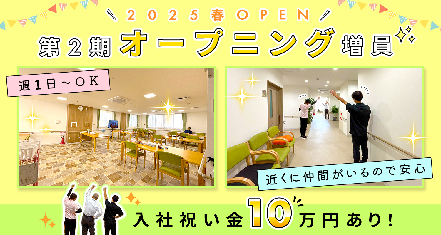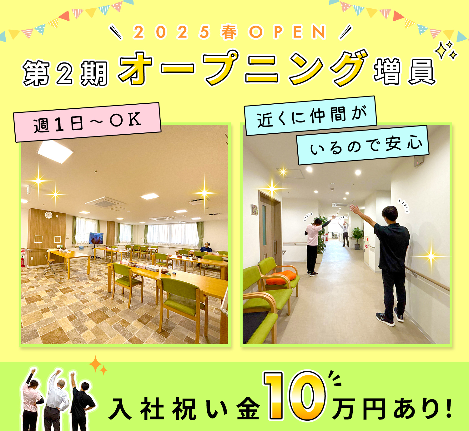 | 仕事内容 | (1)週1日OKの介護福祉士/第二期オープニング[パ] (2)介護/第二期オープニングの介護職員[パ] 2025年春に完全新築OPENした綺麗な施設。 定員56名の住宅型有料老人ホームで、入居者様の身の回りのお世話(食事・口腔ケア・入浴・排泄)や、レクリエーション、季節行事の企画・実施をお願いします。 ※移動は建物内だけで負担少なく、気温や悪天候に悩まされることなし ※ケア記録はスマホ・タブレットでかんたんに入力(PCも可)でき、事務作業の負担少なめ! また、機械浴を導入しており、入浴介助の負担を軽減しています。 ※寝具等の日用品はリース契約をしているので、それらの日用品の洗濯業務はありません! |