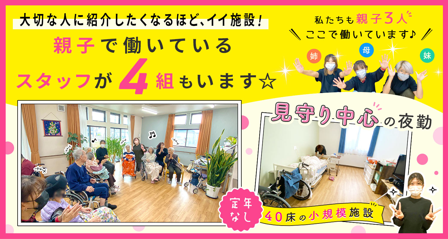 親子で働くスタッフが4組いるほか、友人・知人の紹介入社も多数!