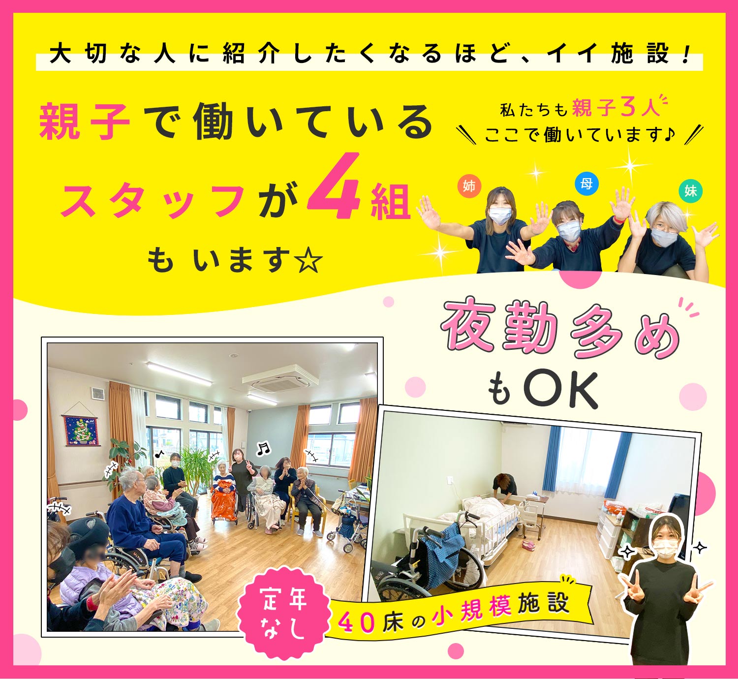 親子で働くスタッフが4組いるほか、友人・知人の紹介入社も多数!