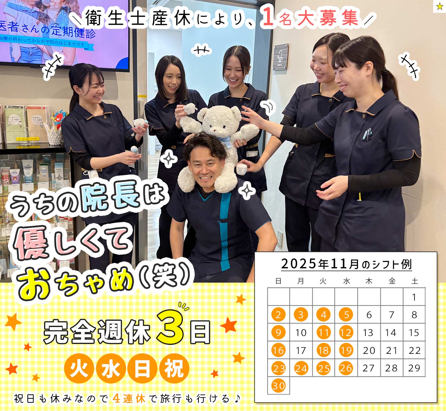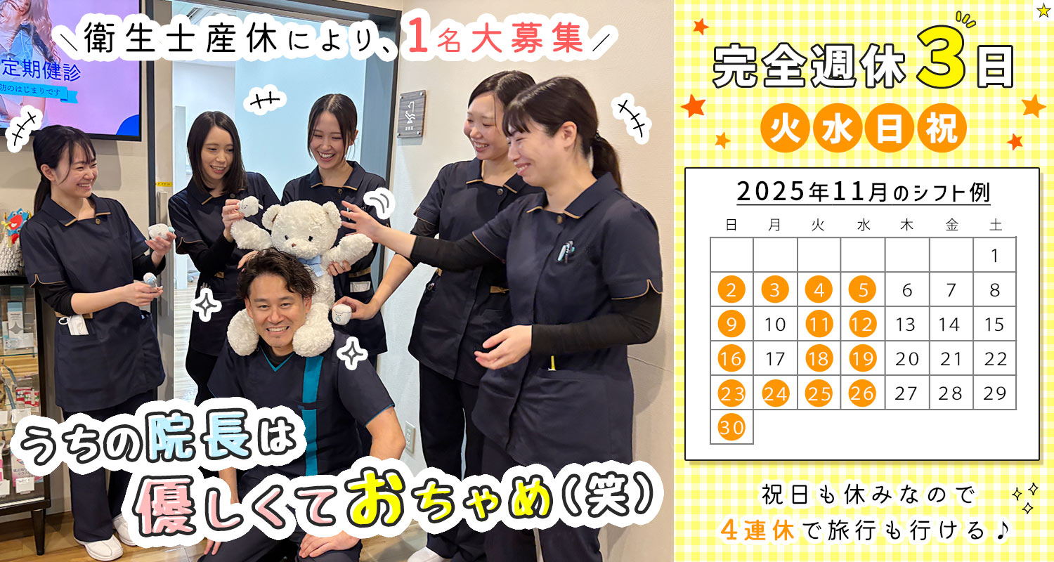 【衛生士産休により、完全週休3日の正社員1名募集!】