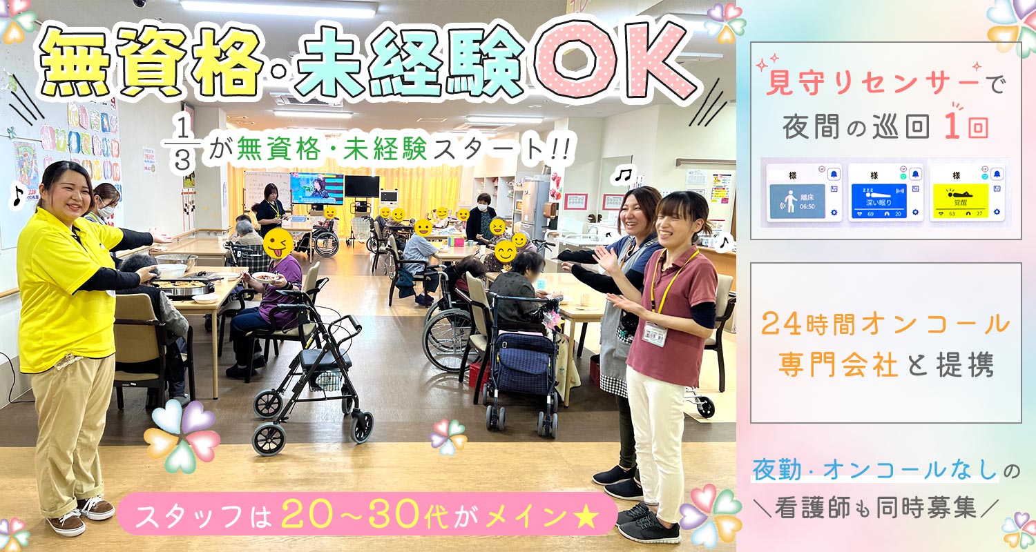 | 応募資格 | 無資格・未経験OK #ブランクOK ※有資格者は歓迎(介護職員初任者研修修了など) ※異業種(飲食、販売、営業、事務、軽作業等)からの転職も歓迎 ※学生OK ※シニアやミドルも歓迎 |