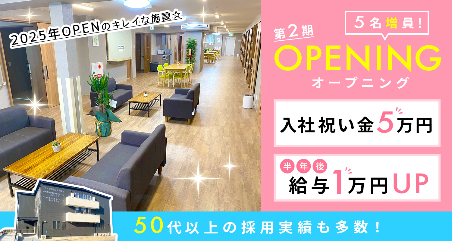 2025年OPENの綺麗な施設で、第2期オープニング増員募集!
