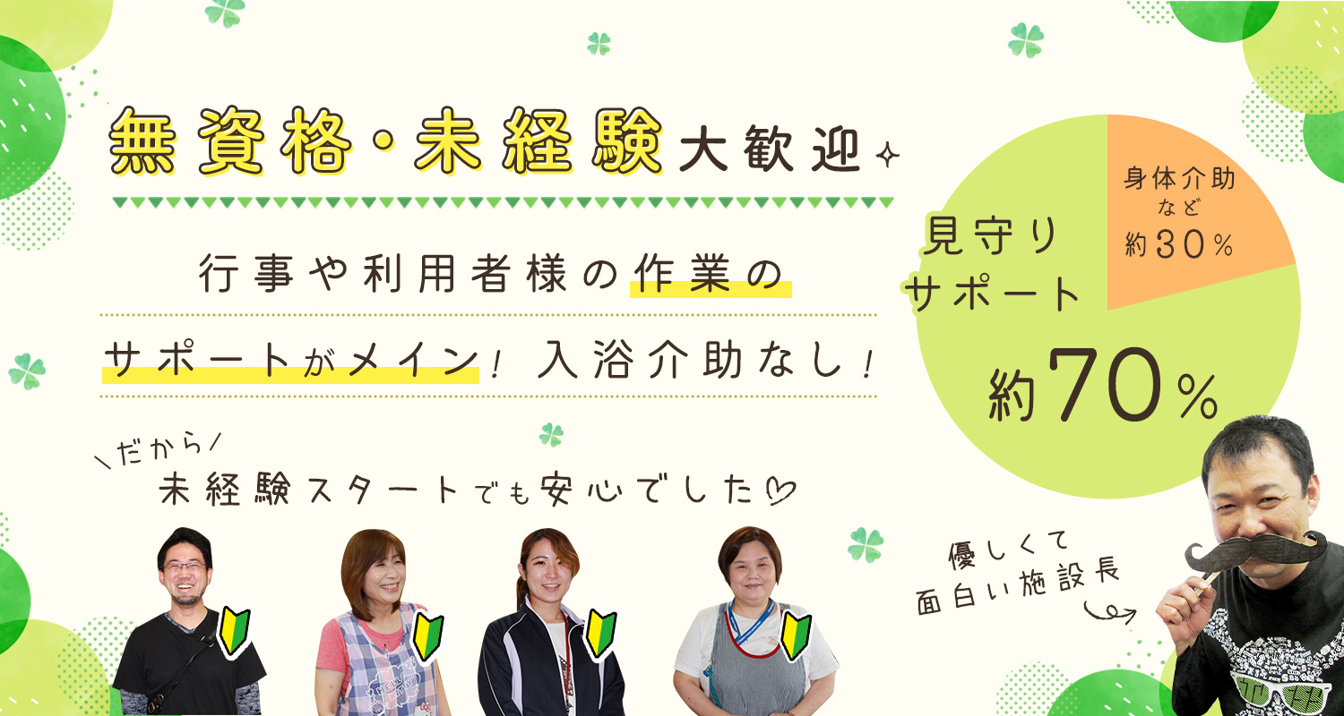 『入浴介助なし』『夜勤なし』なので、無資格・未経験でも始めやすいですよ☆