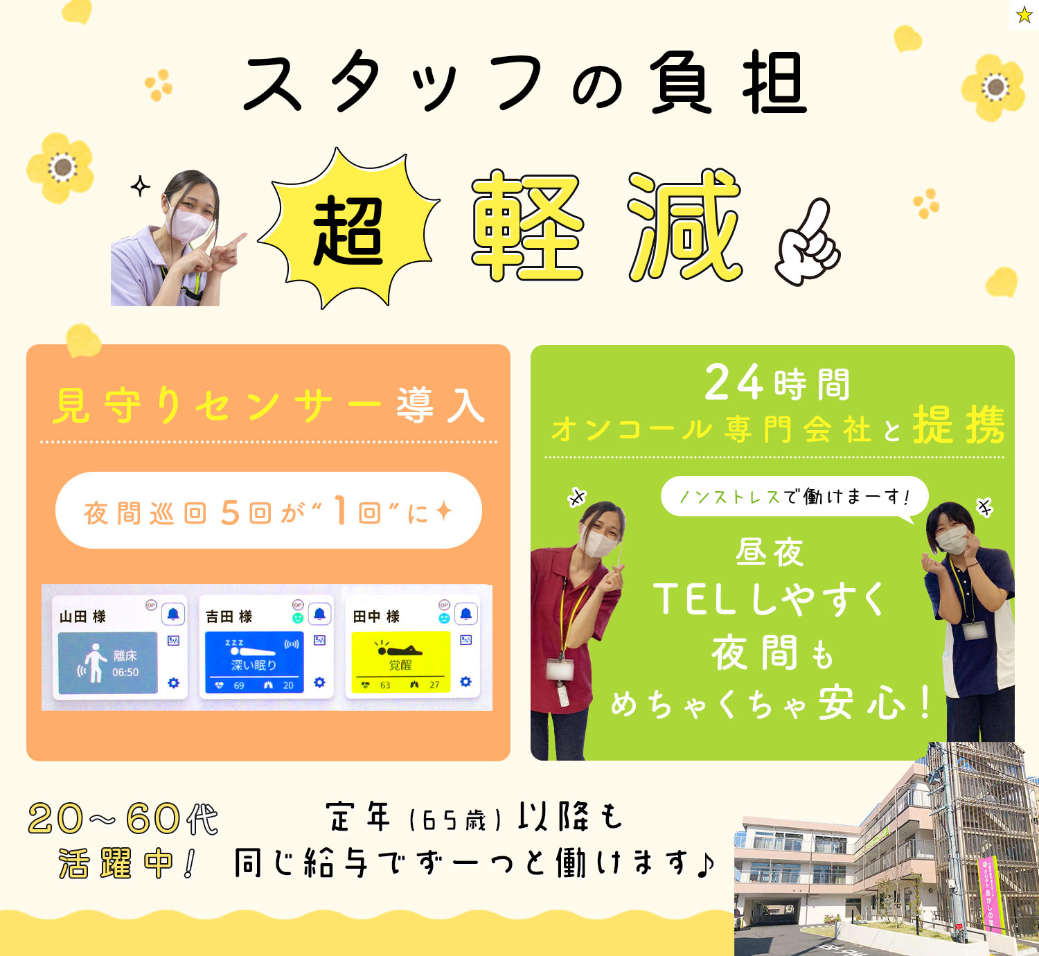夜勤は月4~8回相談OK!ライフスタイルに合わせて無理なく働けます☆