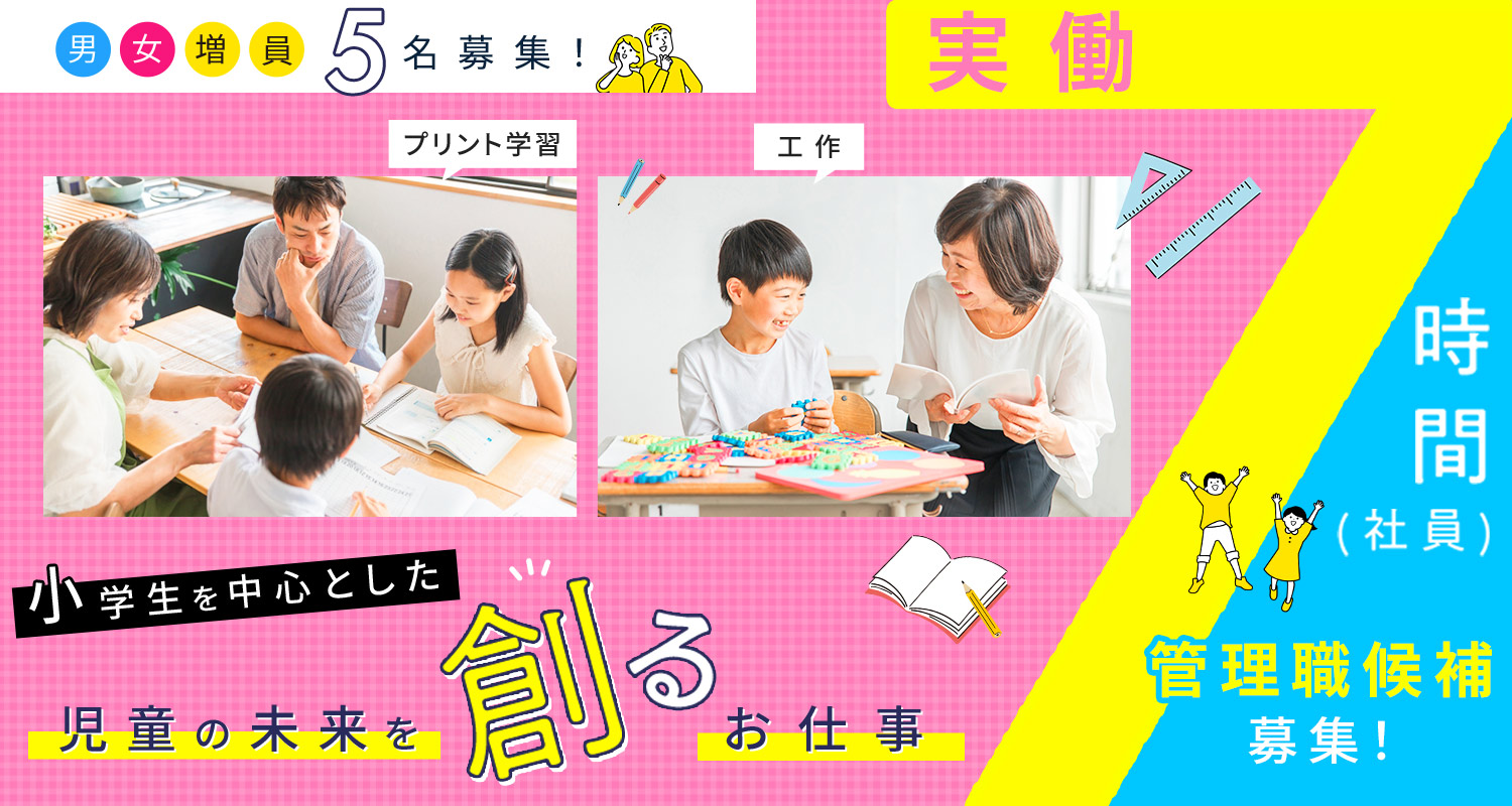 | 仕事内容 | 実働7時間の保育士/管理職候補[社] 発達の遅れが見られる子どもたち(6~18歳)をお預かりし、運動や遊び、学習のお手伝いなど一人ひとりに合わせた療育を行います。 ゆくゆくは現場のリーダー・施設の管理職としてマネジメント業務や施設運営業務もお願いします。 ※運転免許がない方、運転が苦手な方は送迎なしもOK ※定員10名と小規模施設 通っているのは小学生が中心。 施設内は広々としていて、子どもたちがのびのびと過ごせる空間です! ■療育内容 ◎集団生活適応訓練 …グループでのゲーム、歌、会話、絵本読み聞かせ、体操など ◎日常生活訓練 …音楽に合わせた動き、軽スポーツ、音読、手先を使った動き、プリント学習など ◎創作的活動 …絵を描く、ぬりえ、工作、編み物、グループ課題作りなど 「この子は運動が得意」「この子は絵を書くのが大好き」など、一人ひとりの個性・特性・才能を見つけ、伸ばしていくお仕事です! |