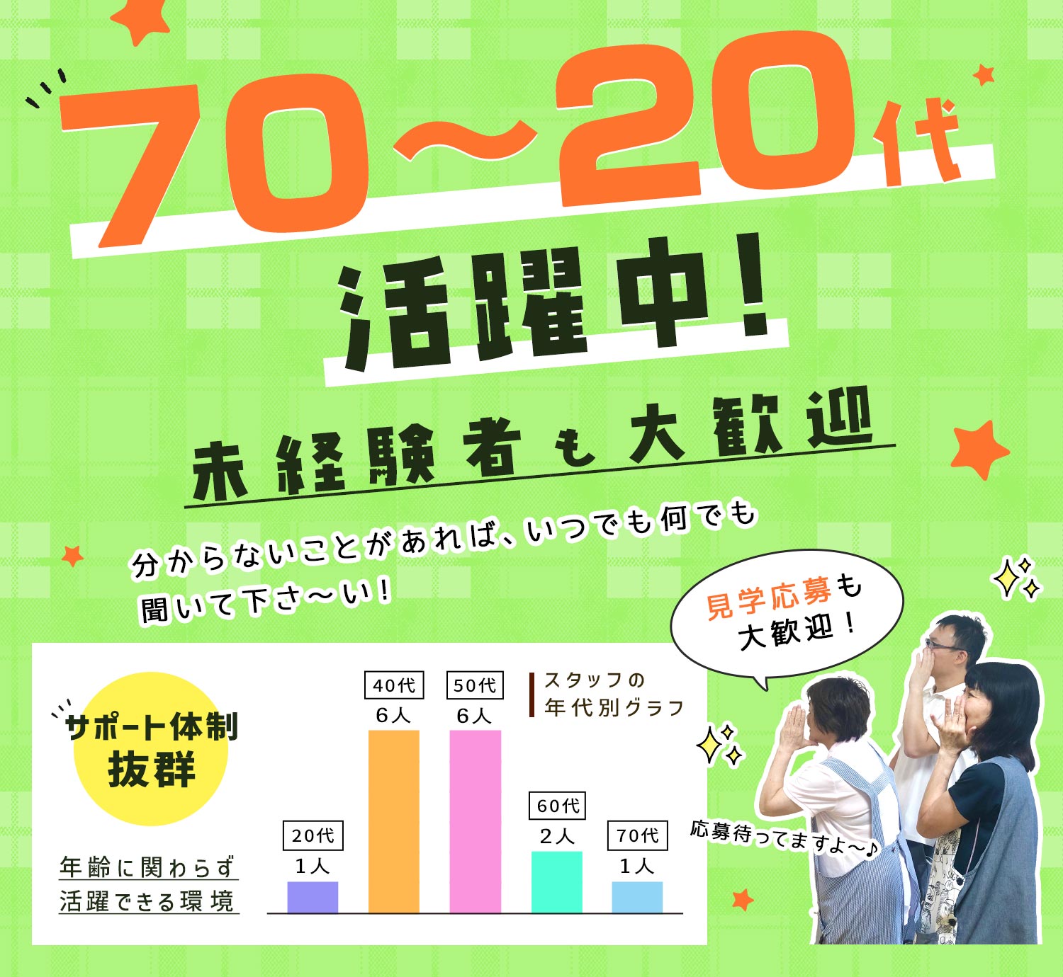 | 応募資格 | 無資格・未経験OK ※シニア・ミドルも歓迎 ※学生も歓迎 ※年齢不問 |