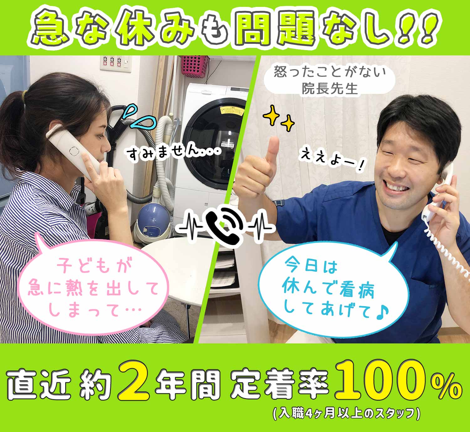 また、「子どもが急に熱を出して…」などの急なお休みもOK♪
