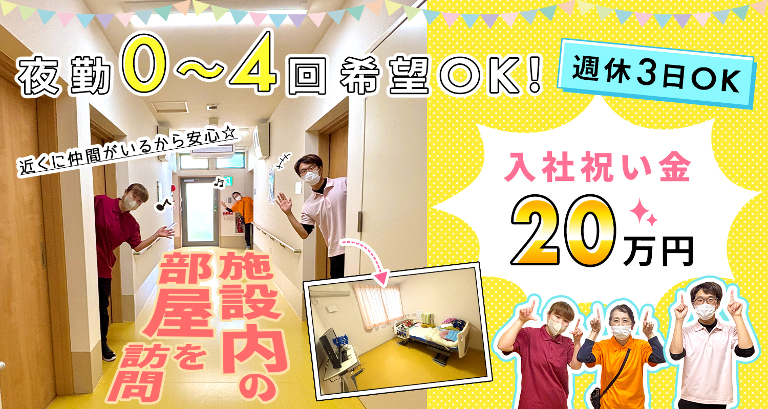 ★入社祝い金20万円(入職から3ヶ月経過後10万円、6ヶ月経過後10万円)