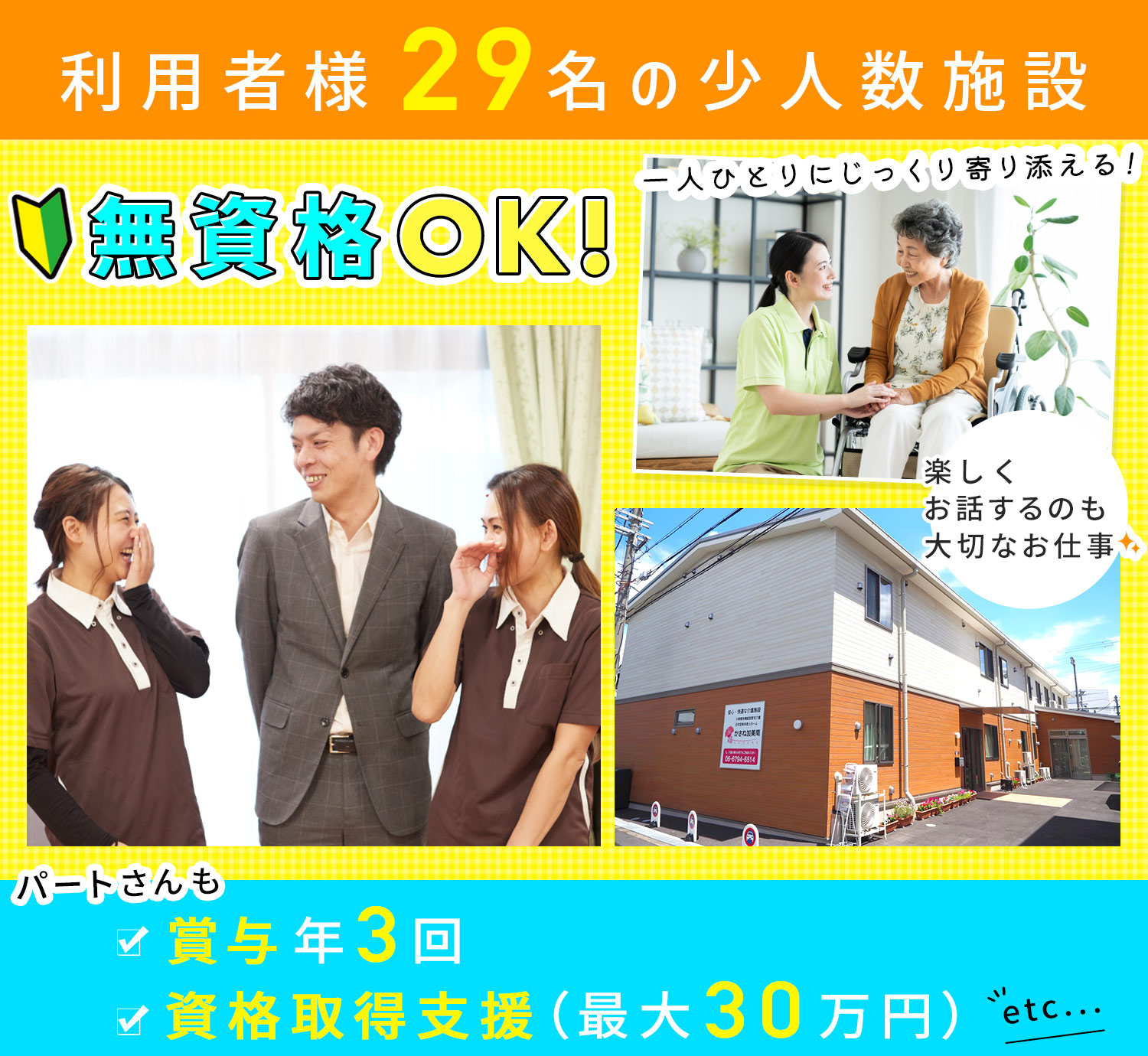 | 応募方法 | ◇ お気軽に【応募する】ボタンよりご応募ください ◇ 24時間受付中です Webからご応募いただく場合、下記内容を備考欄にご記入ください。 ご希望の連絡方法(メール or 電話) 連絡可能な日時 希望者は施設見学大歓迎!(履歴書は必要ありません) □□□ 電話での応募も受付中! 「ジ ョ ブ ポ ス タ ー を見て応募したのですが」と、 お電話すると、スムーズです! |