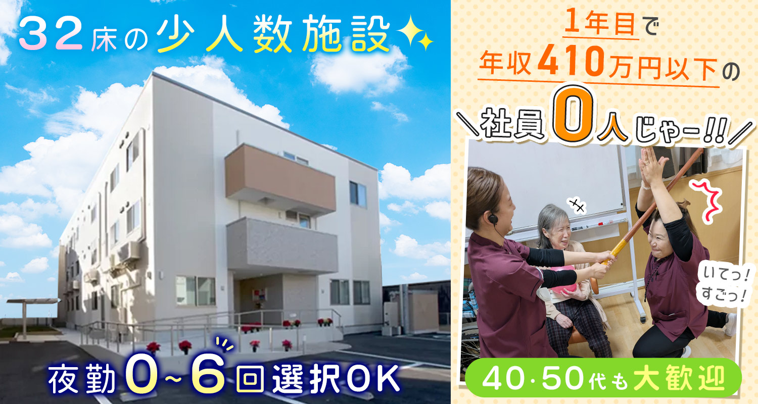 夜勤0~6回OK◎1年目で年収410万円~!看護師常駐