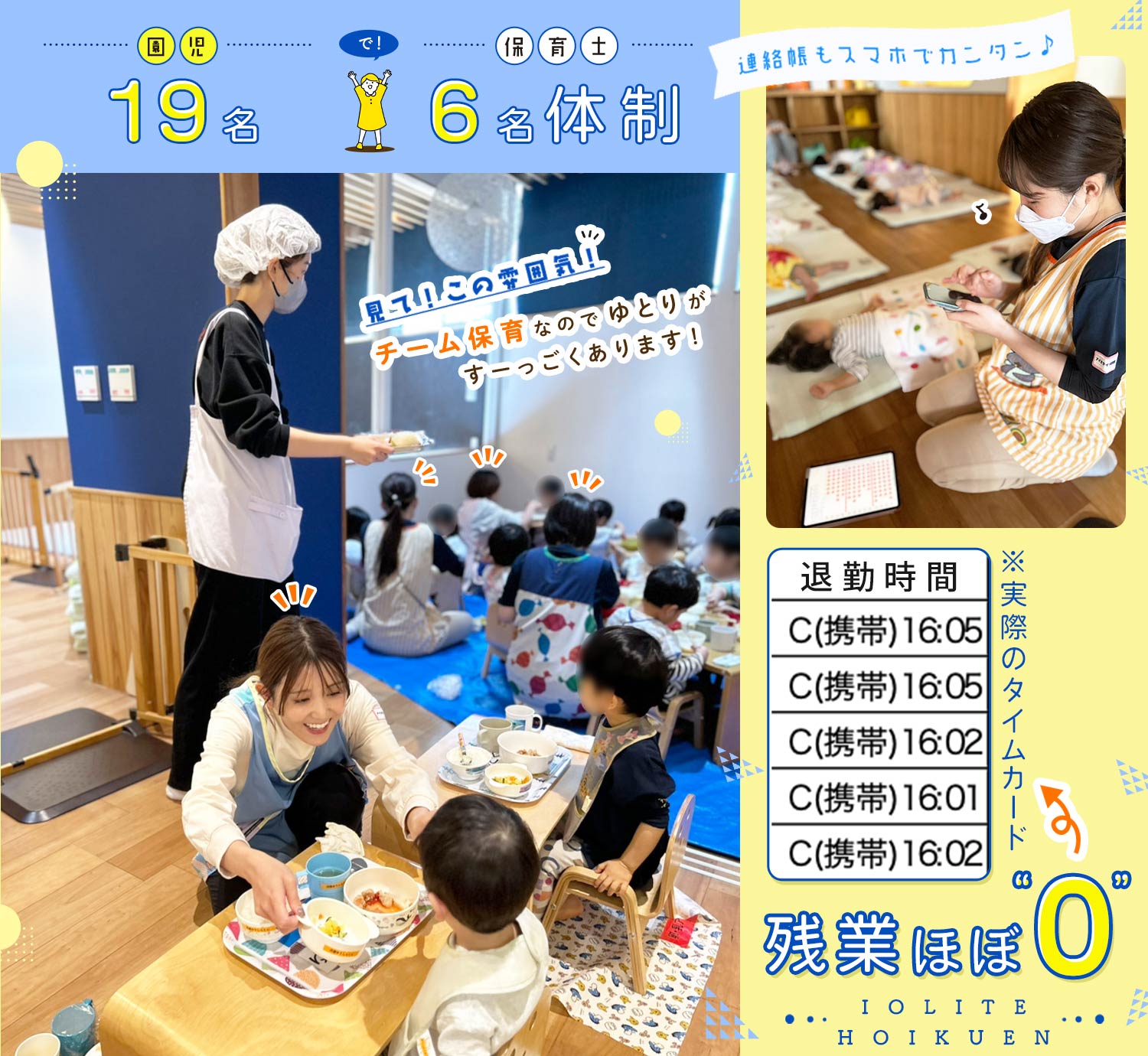 | 仕事内容 | 保育士/バイト・パート[パ] 0~2歳の園児(定員19名)の身の回りのお世話、日常生活や遊びを通じた心身の発達サポート、連絡帳の記録(スマホで簡単)、保護者と職員間のコミュニケーション対応など、保育業務全般をお願いします。 ◎ピアノがひけなくてもOK! ◎連絡帳はアプリで管理!事務作業の手間を削減しています! ◎担任制ではないので、みんなで助け合いながら園児をサポート! |