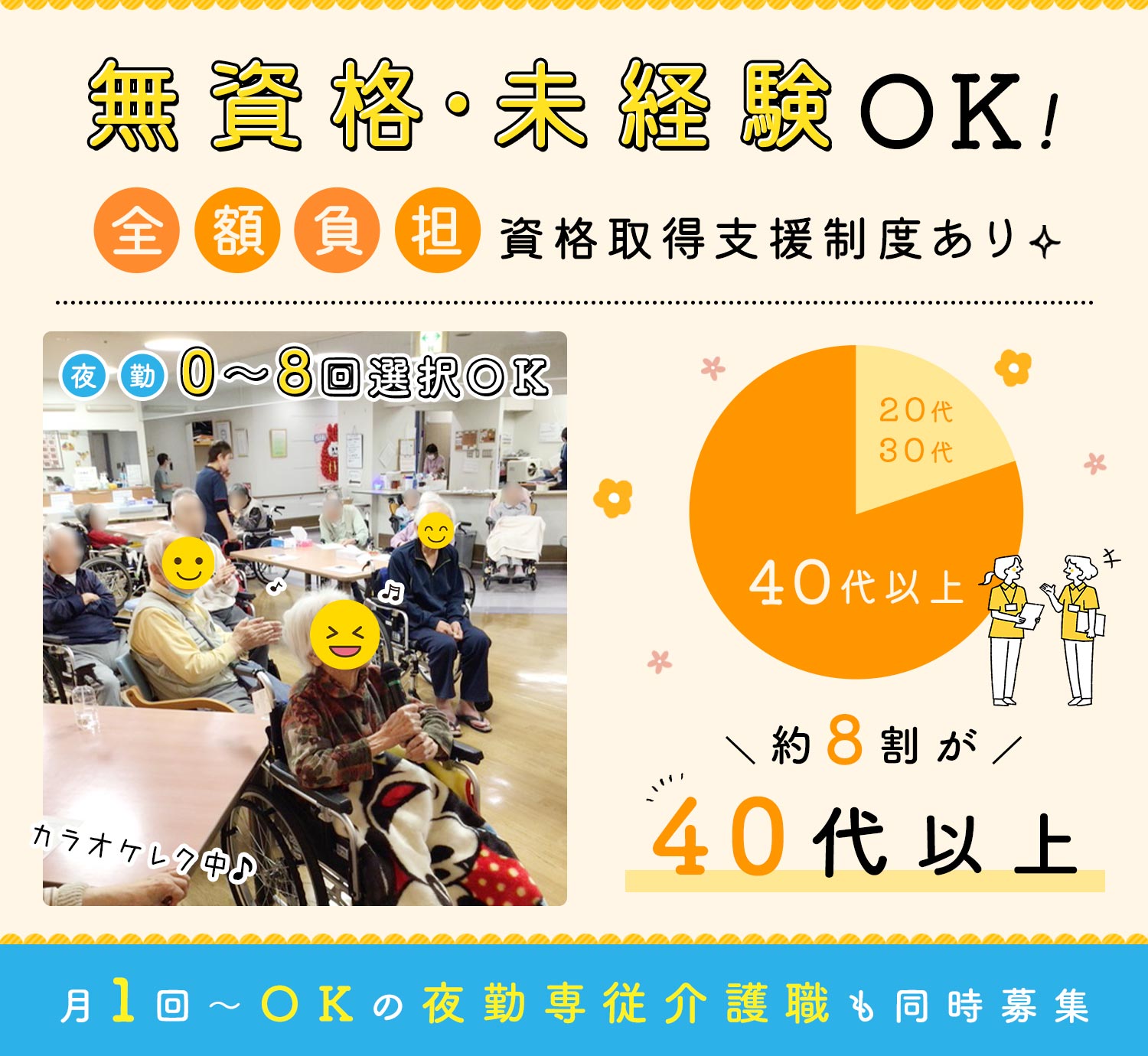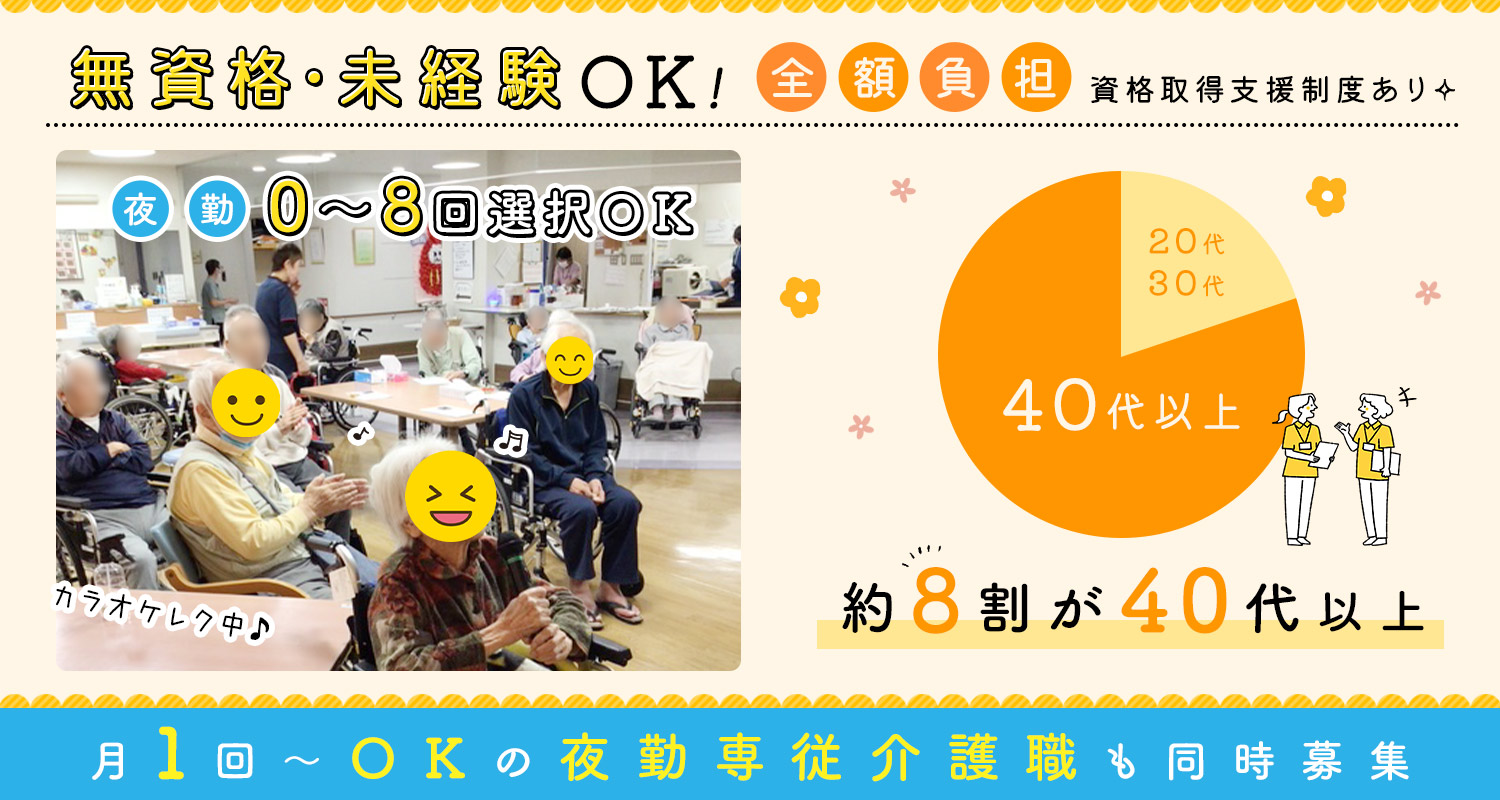 <無資格・未経験OK>夜勤0~8回で選択可能◎