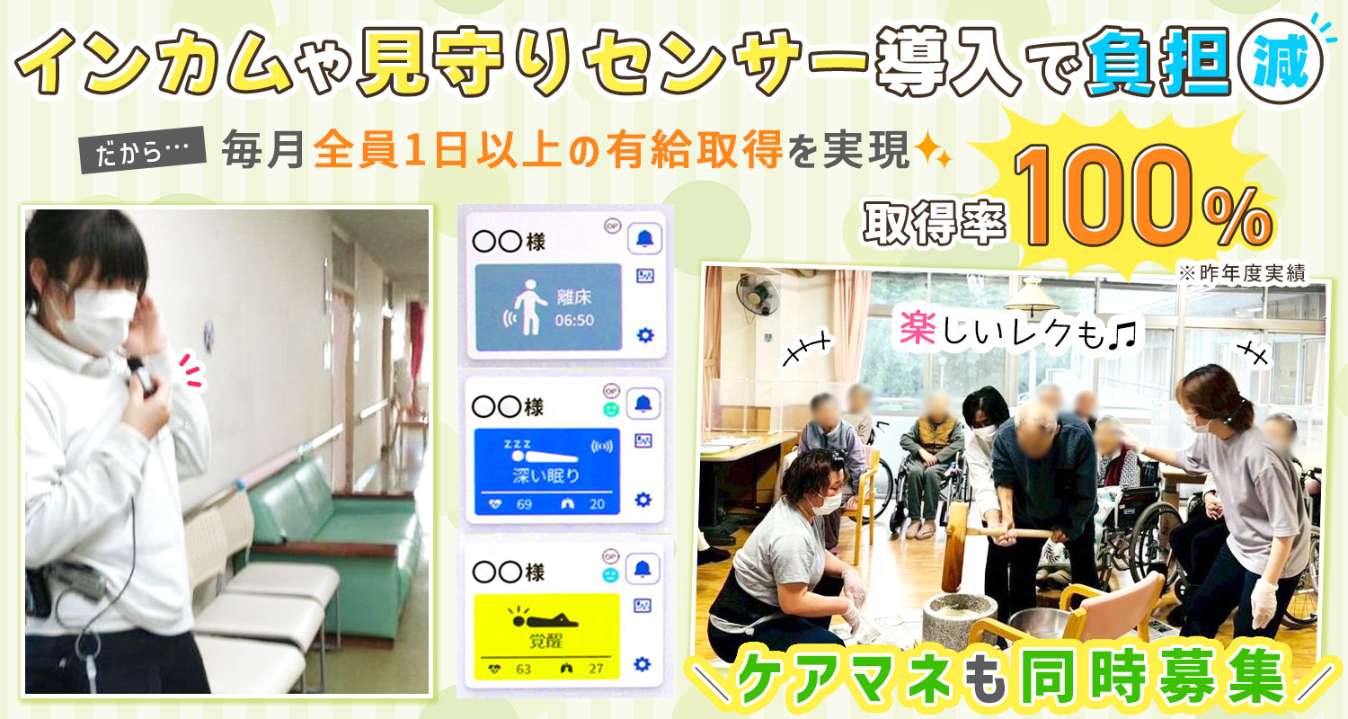 | 応募資格 | 介護支援専門員 実務経験不問 #ブランクOK ※主任介護支援専門員は優遇 ※男女・学歴不問 ※要普通自動車免許(AT限定可) ※正職員は定年65歳までのため、65歳以上の方は非常勤職員(パート/1年ごとに契約更新)となりますが、ご応募は可能です(諸条件が変わります。詳しくはお問い合わせください)。 |