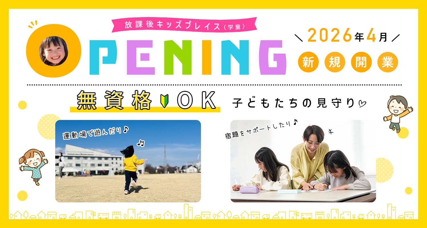 放課後キッズプレイス新規開業に伴い、オープニングスタッフ募集!