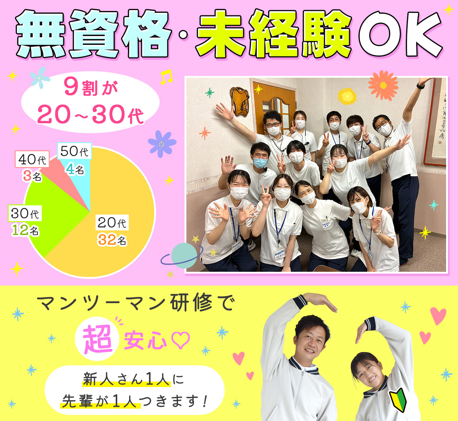若い方が多い施設ではありますが、もちろん40代・50代の方も大歓迎です◎