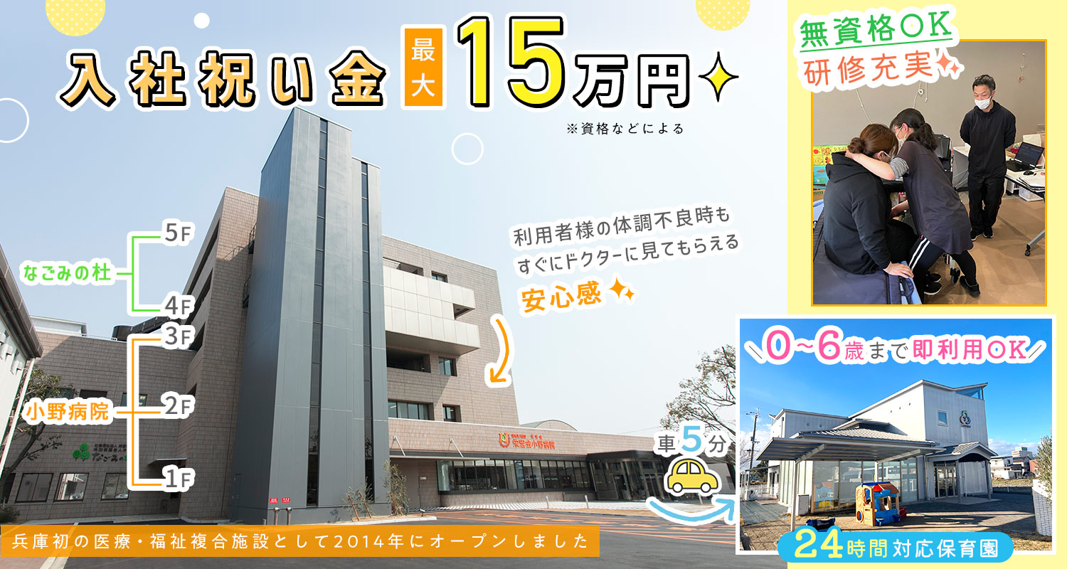 | 仕事内容 | (1)介護職/シニアやミドルも歓迎[パ] (2)夜勤専従の介護職/週1日からOK[パ] 特別養護老人ホームでの介護業務。 (1)入所者様の身の回りのお世話(食事・歩行・入浴・排泄などの介助)や夜間の見回り、レクリエーション、季節行事の企画・実施をお願いします。 (2)就寝前のケアや夜間の見回り、排泄介助、食事介助などをお願いします。 ■フロア担当制 特養は2フロアで、1フロアごとの担当制。夜勤の際にも介護職4人が勤務するなど、余裕のある体制で業務にあたっています。 ■医療と福祉の複合施設 建物の1階~3階は同法人の「小野病院」になっており、常に医師との連携が可能。入所者様の急な様態の変化にもすぐに対応できます。 |