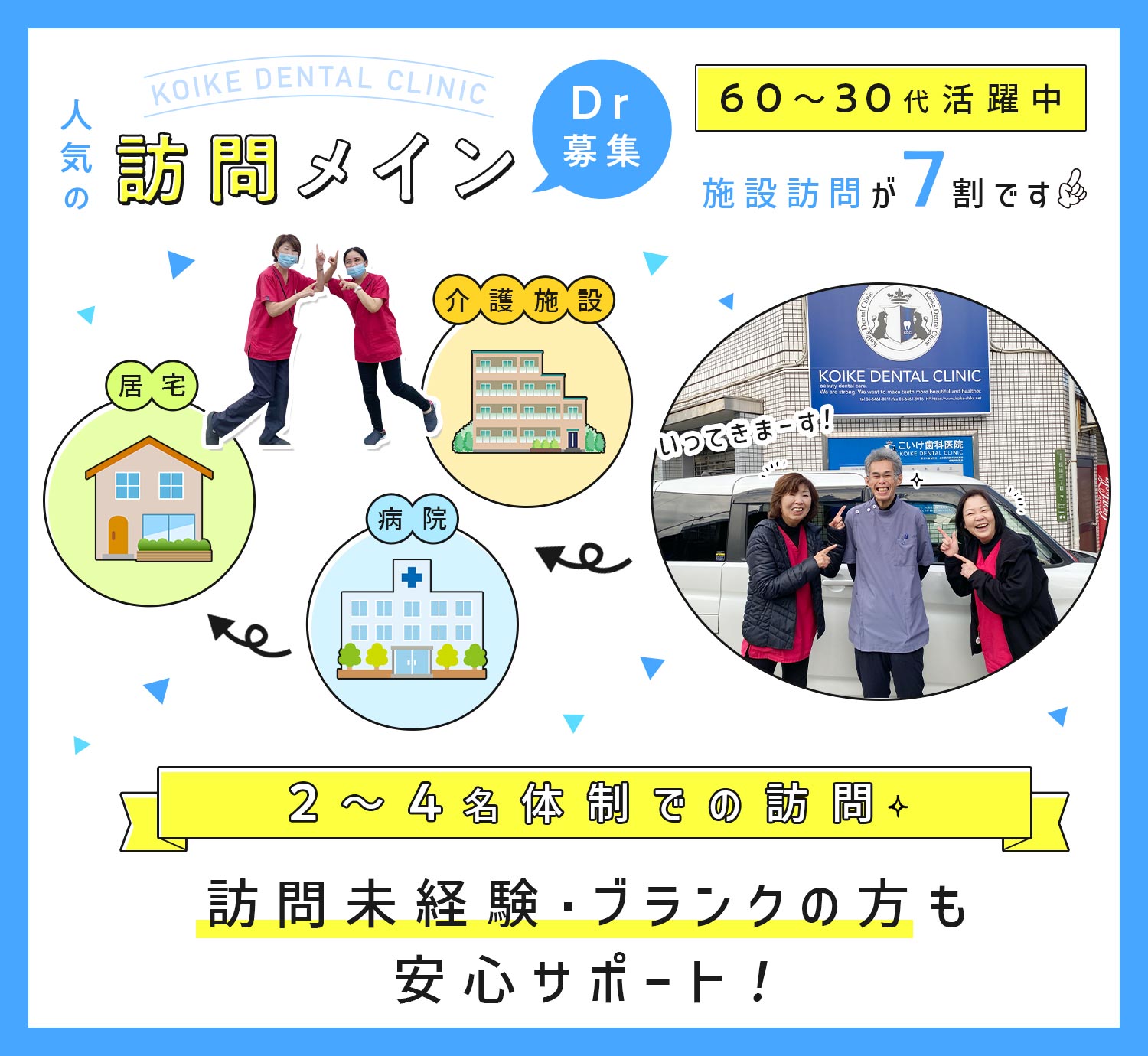 ※歯科医師+歯科衛生士との2~4名チームでの訪問