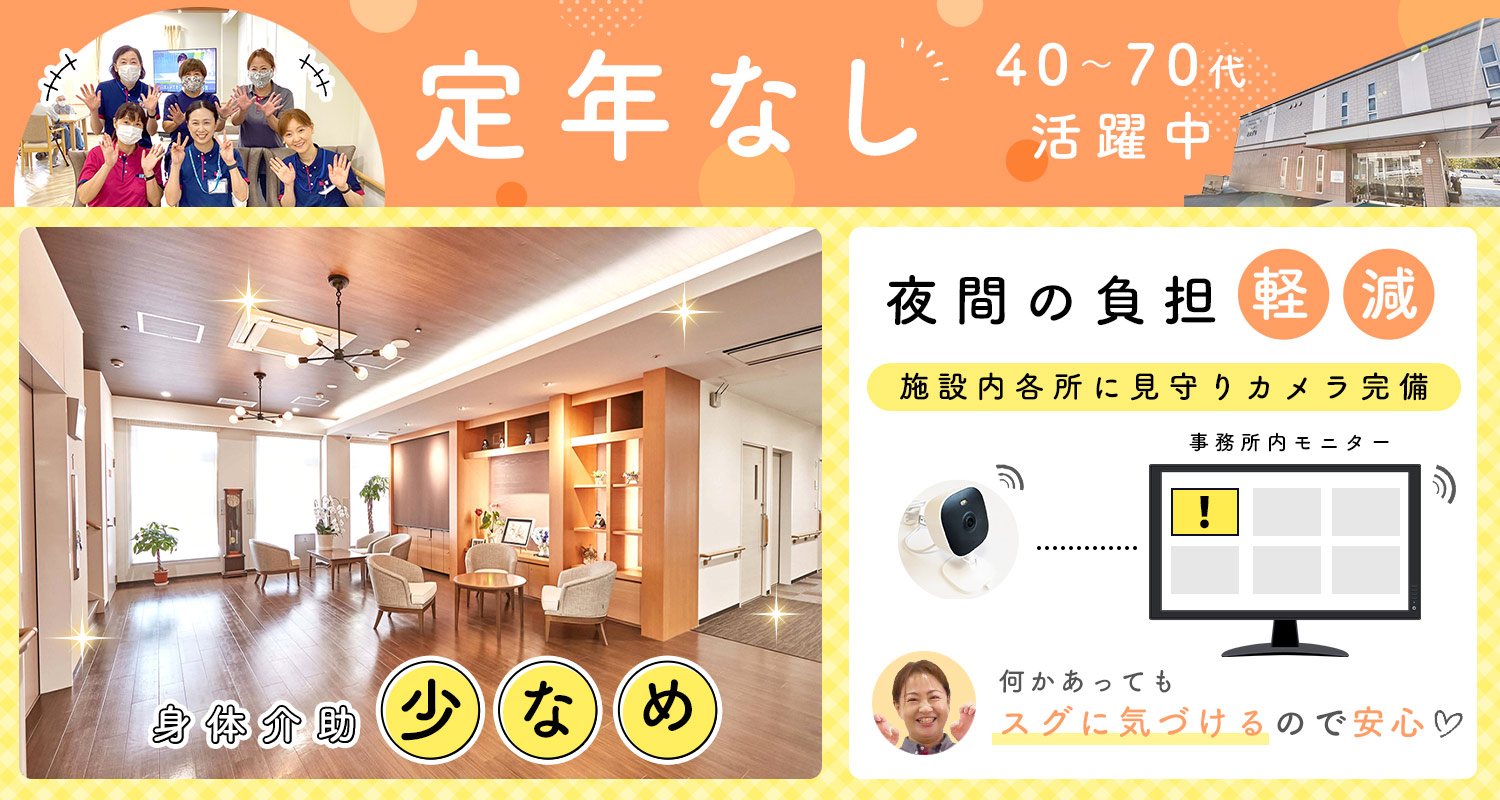 | 仕事内容 | 夜勤専従介護職/週1日からOK[パ] サービス付き高齢者向け住宅(40戸)での夜間の介護業務全般。 入居者様の居室の見回りやトイレのサポート、夕食・朝食の準備などをお願いします。 ◆夜勤は見守りがメイン! ご自身で動ける入居者様が多いので、身体介助少なめ。食事介助が必要な方は数名程度 ◆介護記録はスマホで簡単! どなたでもサクサク簡単に入力できていて、紙の記録と比べて短時間で終了◎ ◆見守りシステム導入! 施設内の各ポイントに見守りカメラがあり、事務所内のモニターで各所の映像が確認できるようになっているので、入居者様の異変にもスグに気づいて駆けつけることができますし、夜間の負担も軽減! 特養・老健なども運営する安定法人で、同等の基準で建設された施設ならではの耐震性も安心のポイント☆ |