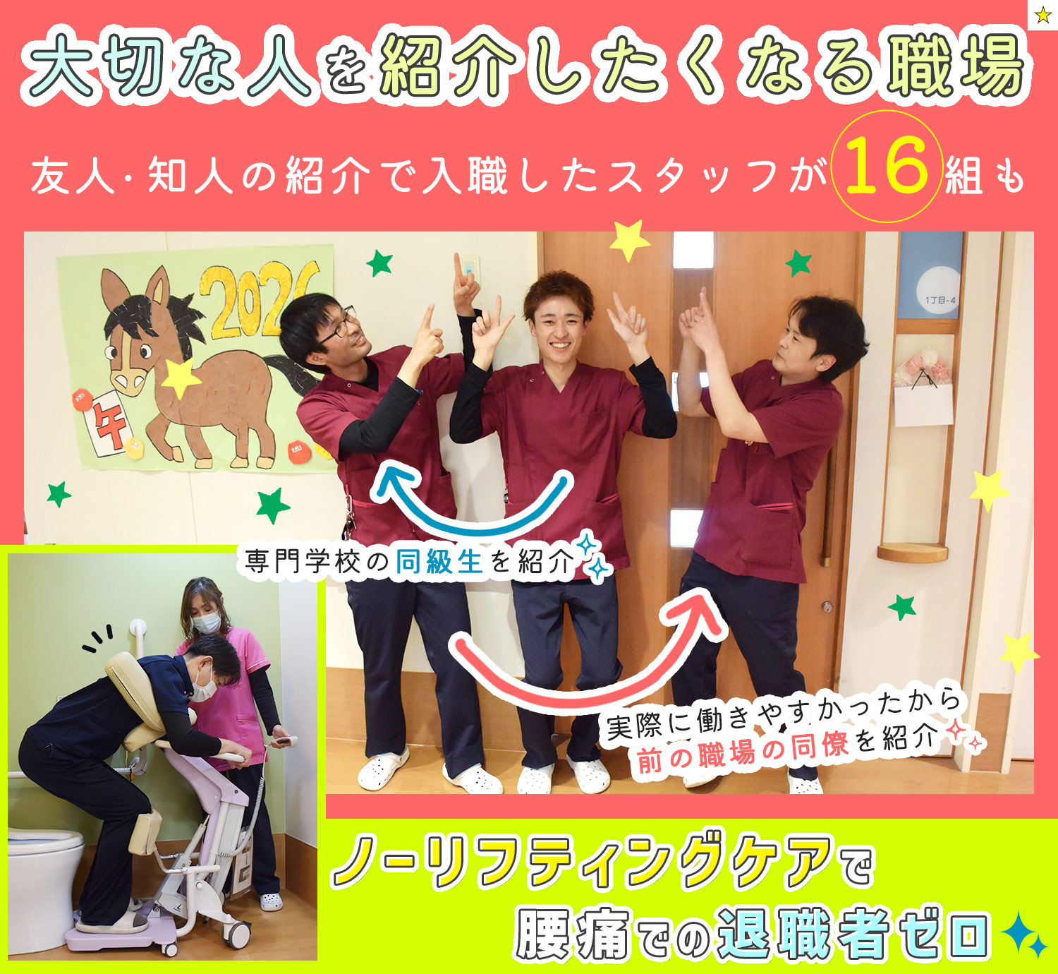 友人・知人の紹介で働いているスタッフが16組も!