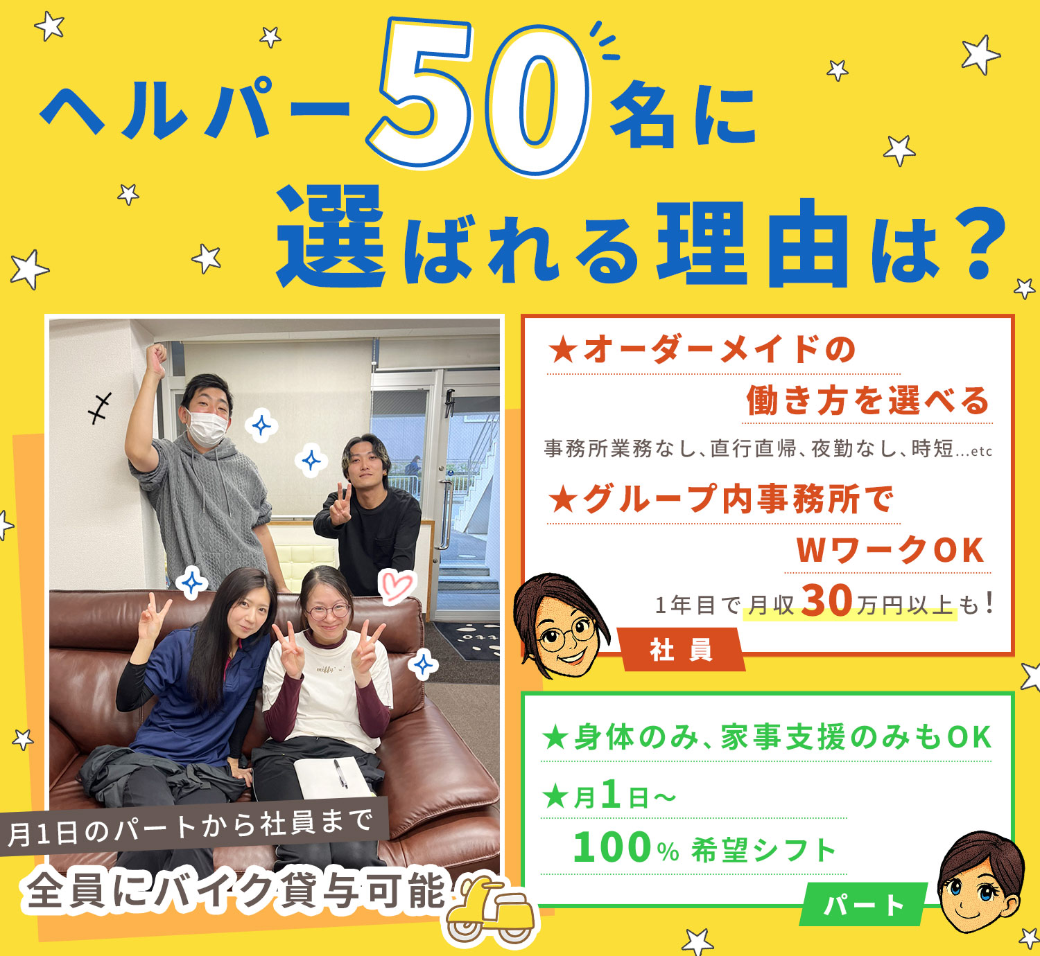 在籍ヘルパーは約50名と多くの方に選ばれています!