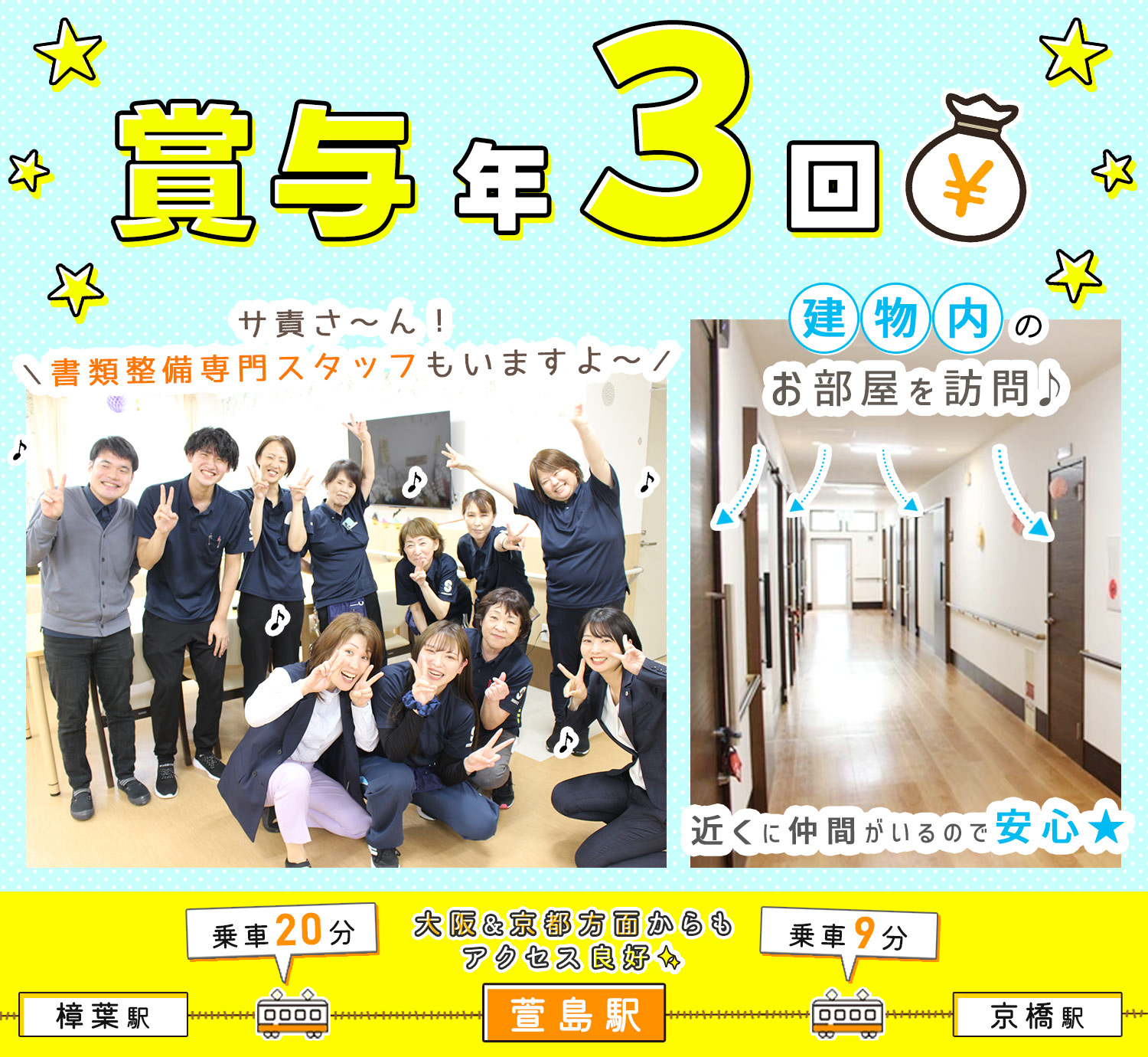 | アクセス | [寝屋川市]京阪 萱島駅から徒歩16分 #車通勤OK (無料駐車場完備、片道2km以上ならガソリン代も支給) |