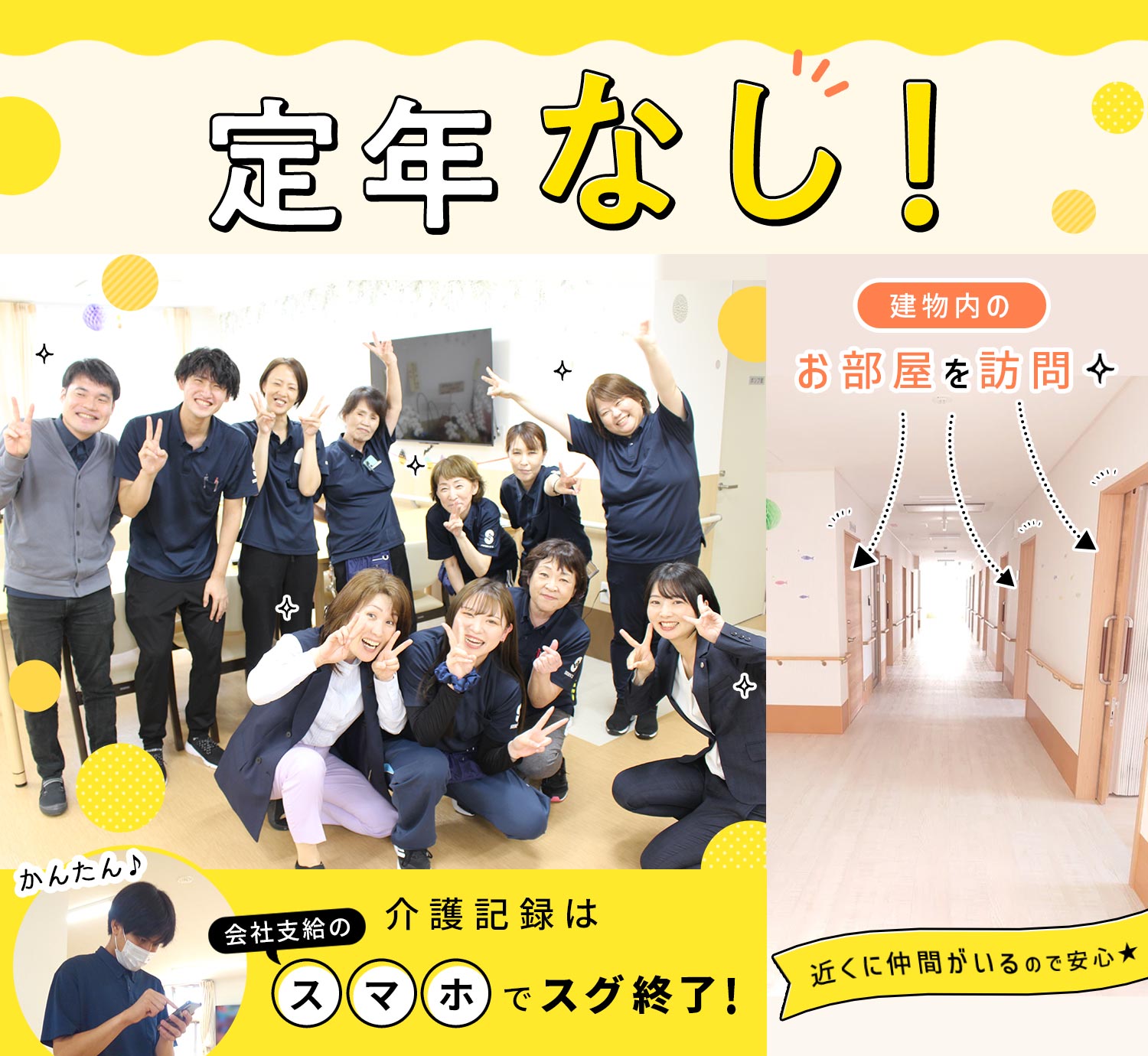 | 応募資格 | 介護職員初任者研修修了(旧ヘルパー2級)以上 #ブランクOK ※実務経験・男女不問 ※年齢不問(シニア・ミドルも歓迎) |