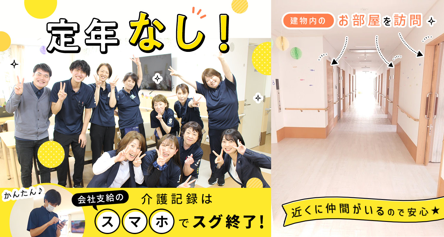 | 仕事内容 | (1)短時間夜勤の介護/介護職員[パ] (2)夜勤の介護/介護職員[パ] 入居戸数50戸の住宅型有料老人ホームにて、 夜間の見回りや排泄介助など、介護業務全般をお願いします。 ◆ケアの伝票は会社支給のスマホを使用 紙への記録と比べて事務作業の負担を大きく軽減! (紙の記録は平均30分~1時間程→スマホなら10分程に☆) 使い方は丁寧にレクチャーしますし、50代以上の方も便利に使いこなしています◎ OPENから2年目の施設なので綺麗で快適なのはもちろん、身体的な負担を軽減する最新設備も導入! |