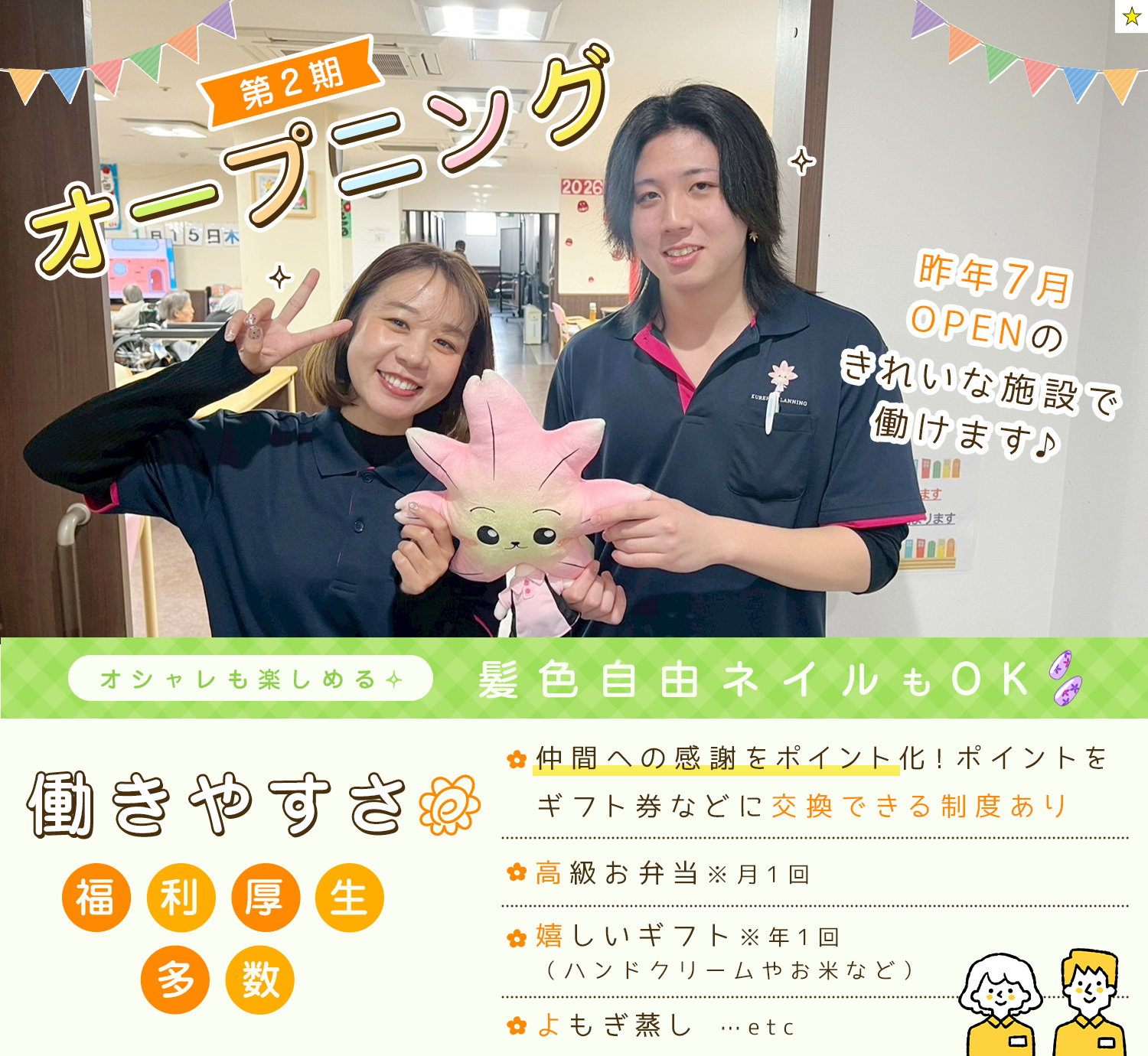 【昨年7月に新築OPEN!入居者様増加に伴い、スタッフ増員大募集】