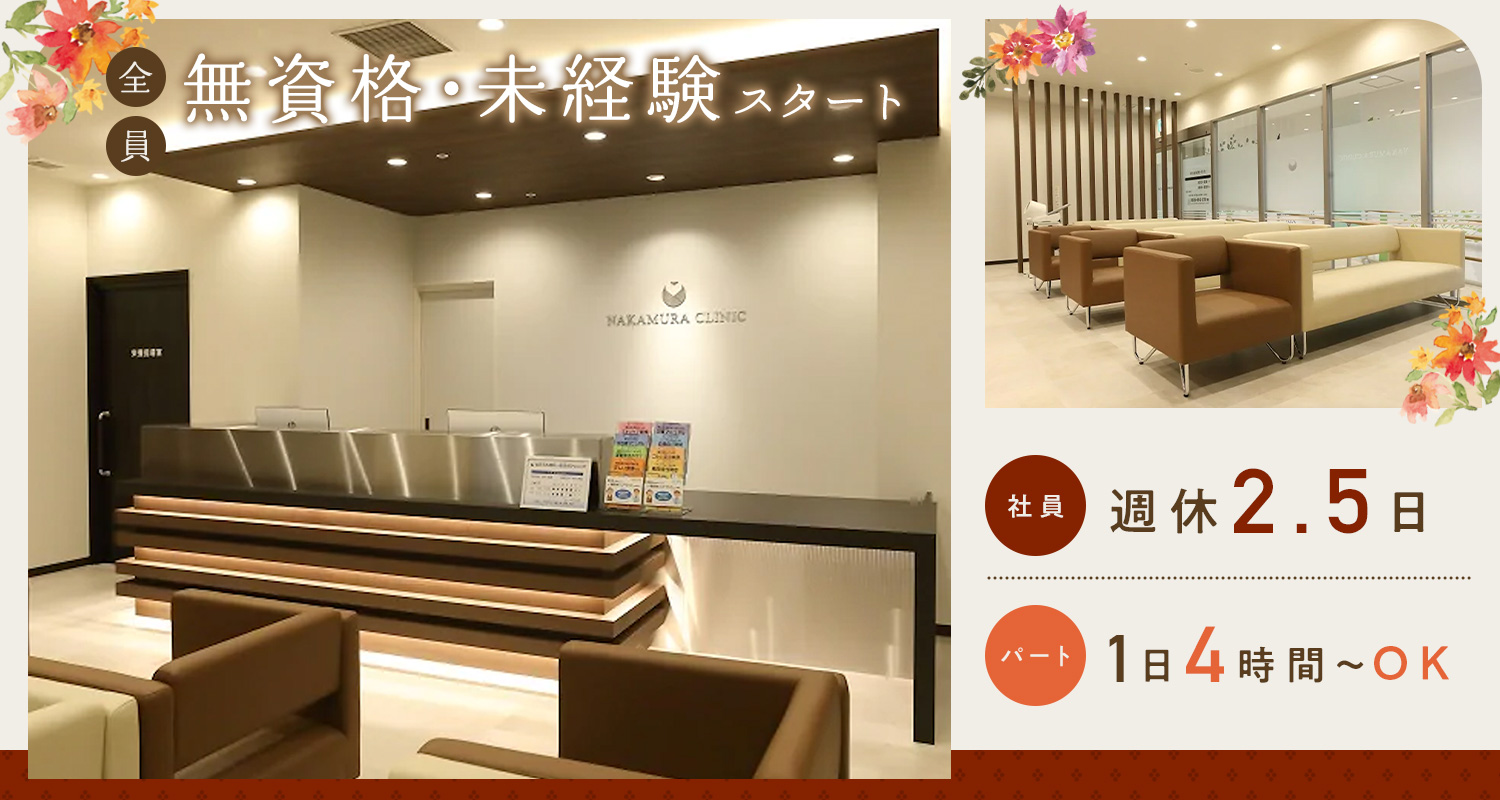 | 仕事内容 | 事務受付・医療事務[社] 内科・糖尿病クリニックにて、受付や会計などの患者様対応、電話応対などをお願いします。 ※レセプト業務はありません。 ◆未経験の方歓迎! 先輩スタッフも全員無資格・未経験からスタートしています。 常時3名体制でフォローもバッチリ。受付からはじめて一つずつステップアップしていただきます。 |