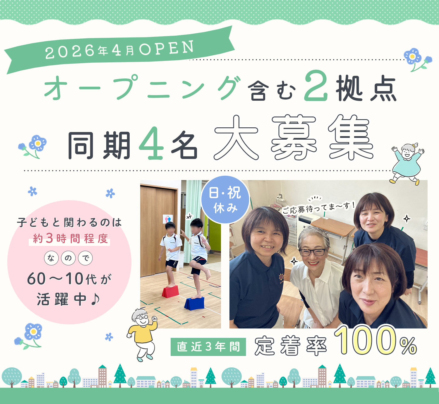 | 応募資格 | (1)保育士 (2)下記(a)~(c)のいずれかに該当する方なら応募可能 (a)無資格・未経験OK 教育・心理・社会福祉・社会いずれかの学部、学科などの卒業者 (b)以下のいずれかの資格をお持ちの方/実務未経験OK ・教員免許(幼稚園・小・中・高いずれか) ・社会福祉士 ・精神保健福祉士 ・理学療法士 ・作業療法士 (c)無資格OK 高等学校を卒業し児童福祉事業(学童保育、乳児院、地域子育て支援事業所、保育所、こども園など)の実務経験2年以上 #ブランクOK □□□ ※児童発達支援・放課後等デイサービス未経験大歓迎! ※普通自動車免許(AT限定可)お持ちの方は尚可 |
