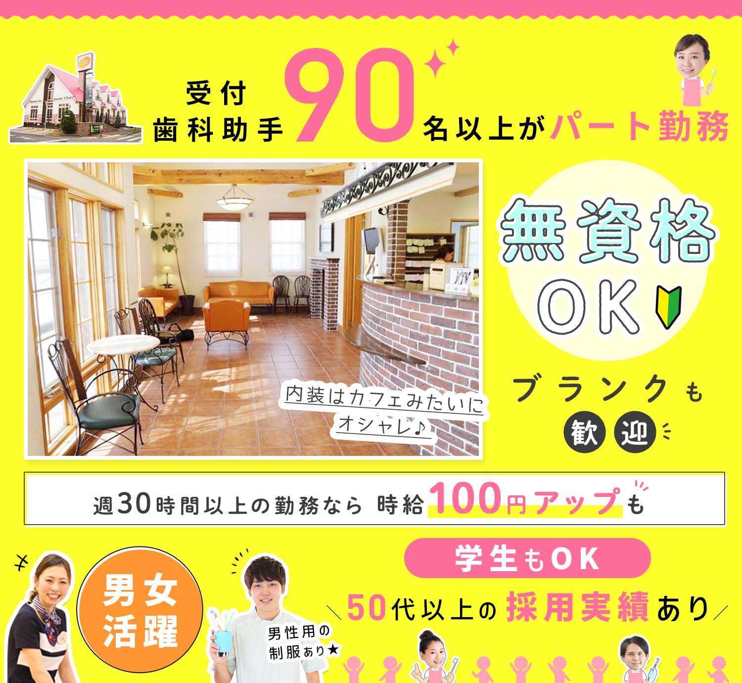 男女問わず、歯科や医療の経験がない方でも大歓迎!