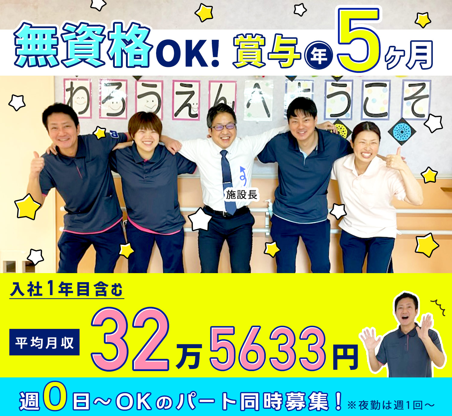 | 応募資格 | 介護職員初任者研修修了(旧ヘルパー2級)以上 #ブランクOK #副業・WワークOK ※年齢不問!ミドル・シニア世代も大歓迎 ※夜勤のため18歳以上の方 |