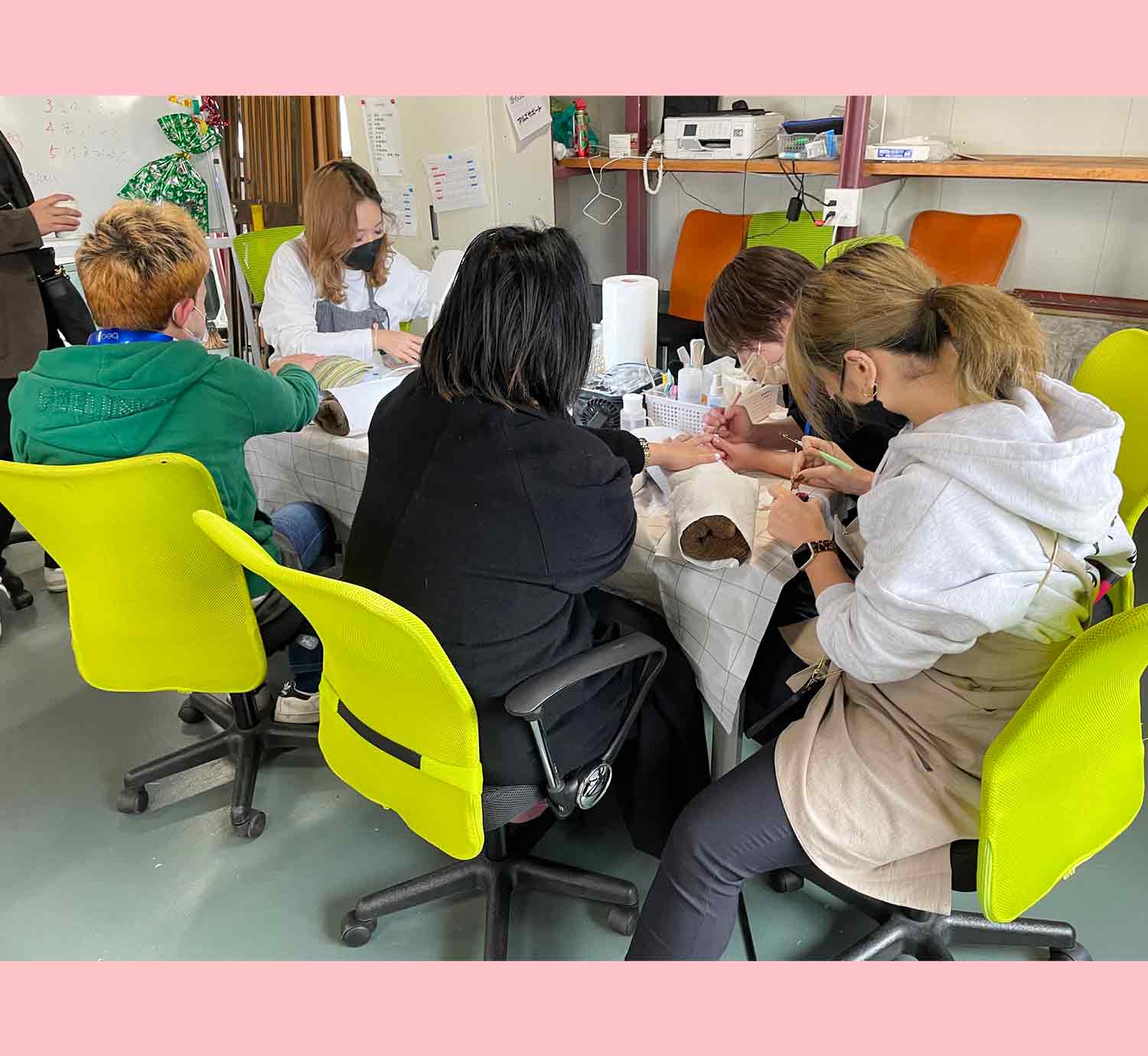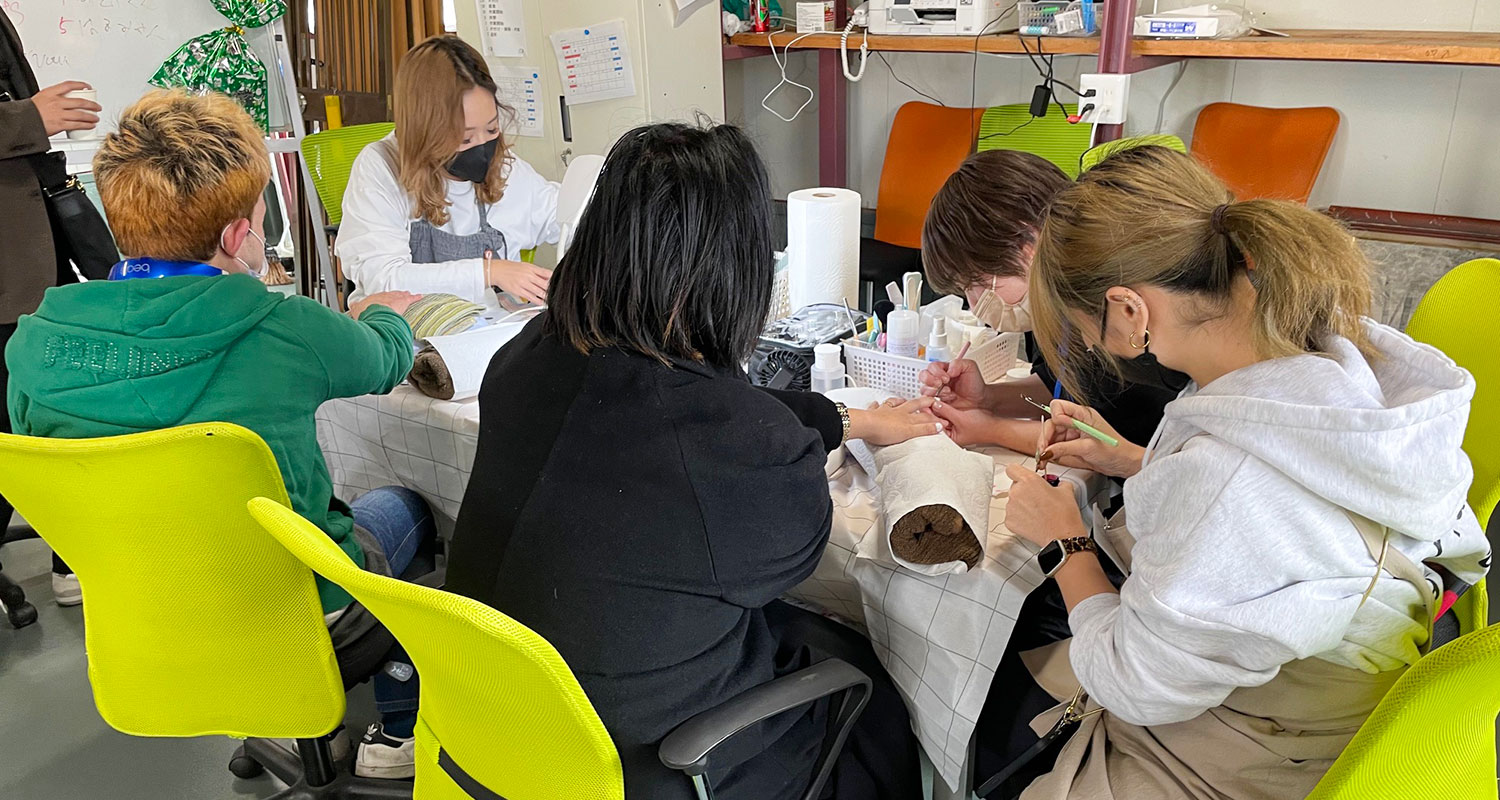 オシャレも楽しみながら働けますよ。実は、代表の娘さんはプロのネイリスト!利用者様にネイルをすることも☆