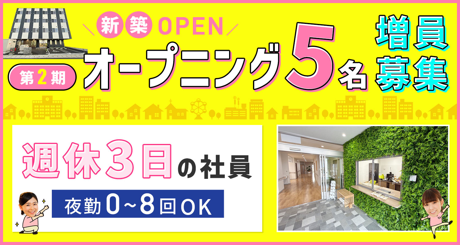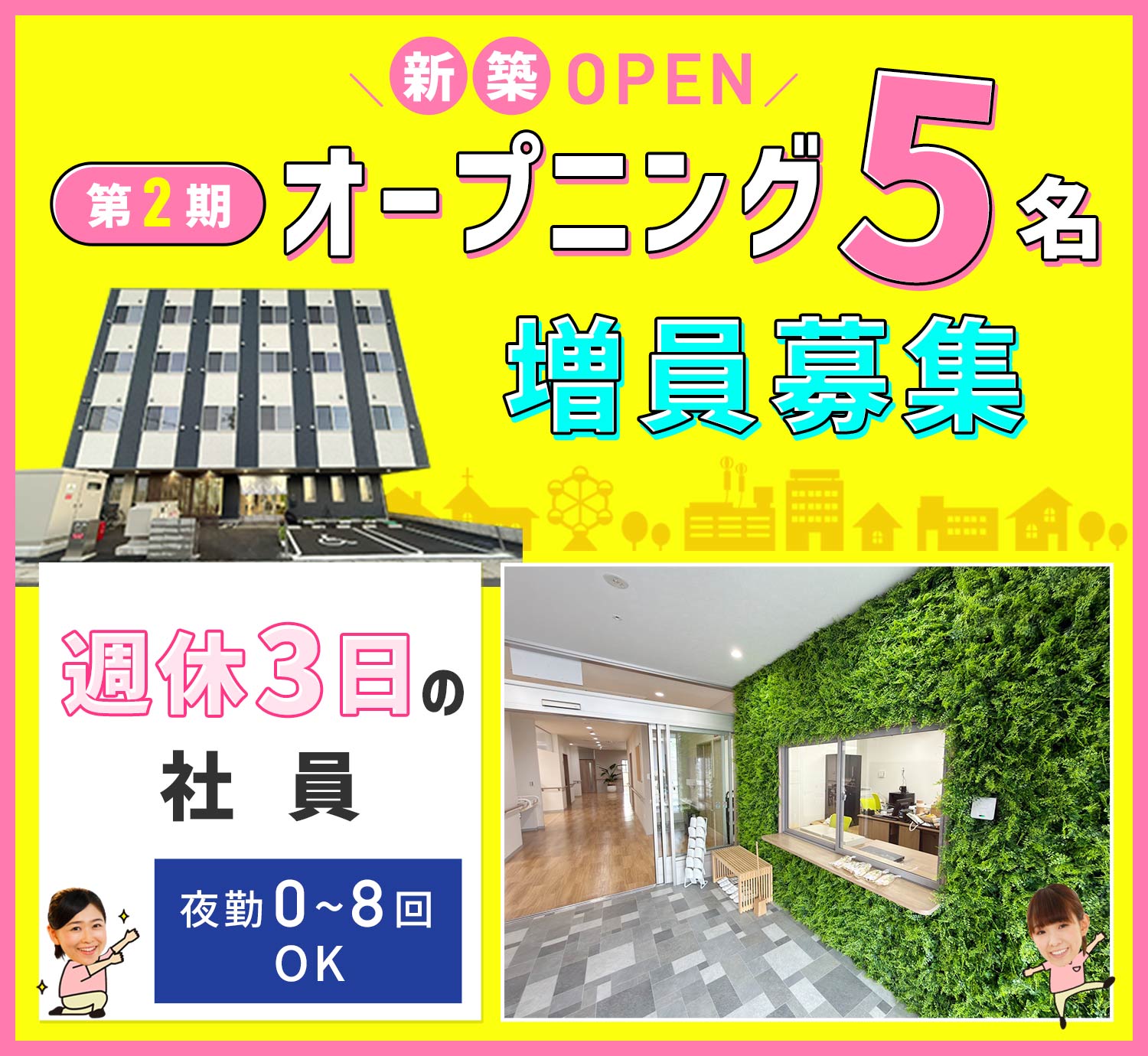 | 仕事内容 | (1)週休3日の介護職/第二期オープニング[社] (2)日勤のみ・週休3日の介護職/第二期オープニング[社] 2025年11月完全新築OPENの住宅型有料老人ホームでの介護業務全般。 入居者様の身の回りのお世話(食事・入浴・排泄・生活援助)などをお願いします。 ※夜勤時は夜間の見回りや経過記録の記入、起床準備など ※24時間看護師常駐!夜勤は4名体制で安心(介護職2名+看護師2名) ※ケア記録はタブレット入力!事務作業の負担を軽減 |