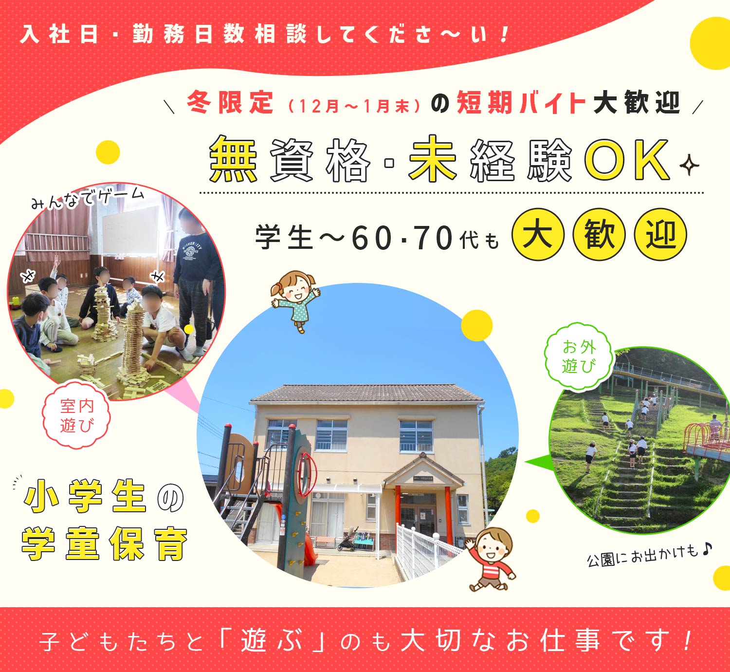 仕事内容 (1)学生もOKの学童保育/事務から転職OK[パ]