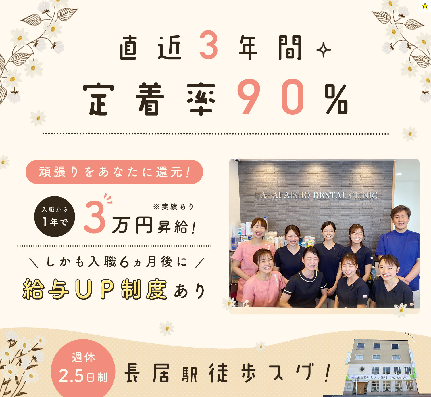 | 応募資格 | 歯科衛生士資格 #ブランクOK ※新卒・第二新卒も歓迎  |