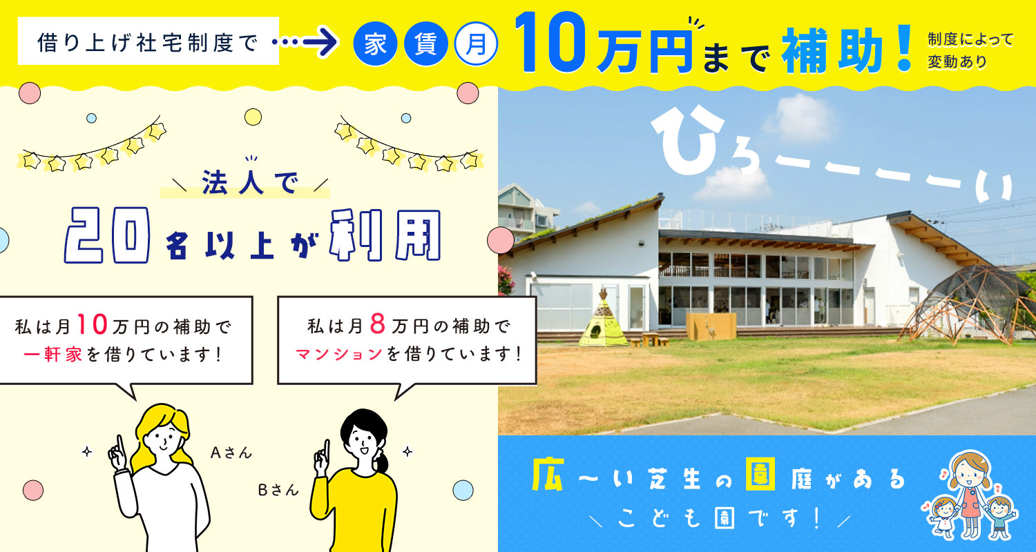 | 待 遇 | #昇給あり (勤続年数による) #社会保険完備 ※規定あり 交通費支給(月3万円迄) #車通勤OK (駐車場あり) バイク・自転車通勤応相談 健康診断・予防接種 給食費補助(1食あたり200円のみ負担) 神戸市の「6つのいいね」対象 ・一時金支給 ・借上社宅制度(家賃補助) ・パートで復職した方に一時金支給 ・資格試験の学習費用を補助 ※一時金・補助は、制度によって変動あり |