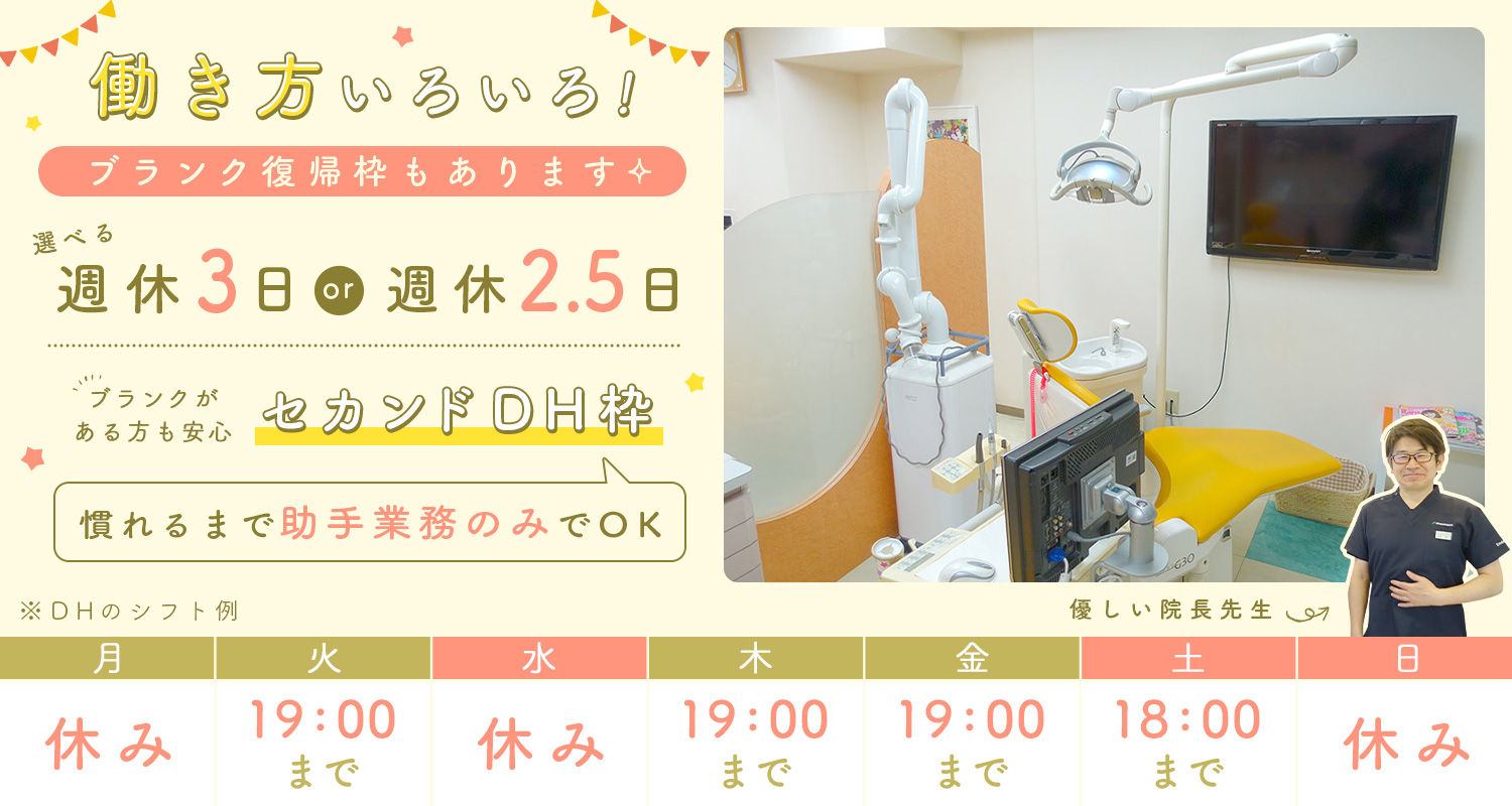 (2)受付・一般事務・歯科助手/週休3日[社]
