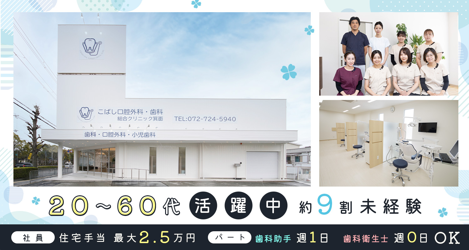 | 仕事内容 | 歯科衛生士/前職給与100%保証[社] 歯科衛生士/週ゼロ日もOK[パ] 歯科予防処置や歯磨き指導、ドクターのアシスタントなど。 ◆口腔外科未経験でも大丈夫! 「口腔外科って難しそう」と思っていませんか。実は、お任せする内容は一般歯科で行うアシスタント業務と同じ。 特別な知識や技術は必要ありませんので、未経験の方もご安心ください! また、一般的な“町の歯医者さん”ではお断りするような治療も当院では対応しますので、様々な症例に立ち会えるチャンスです◎ ◆あなたの希望する働き方を尊重します! 「メンテナンス業務に専念したい」「アシスタント業務中心がよい」「色んな業務を経験して腕を磨きたい」…etc、衛生士さんそれぞれ色々な考え方があって当然です。そこで当院では、あなたの希望に沿った業務ができるよう最大限配慮!一般・審美・口腔外科・小児歯科、様々な分野に対応した歯科医院なら、あなたが求める理想のスタイルがきっと叶いますよ☆ |