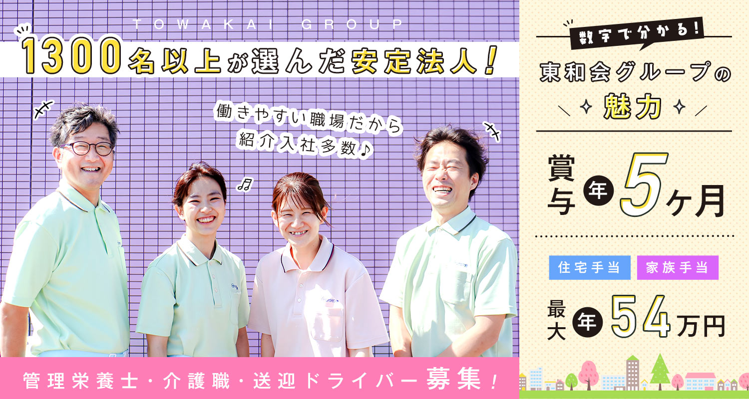 <賞与5ヶ月>職員1300名以上の安定法人!住宅・家族手当あり☆