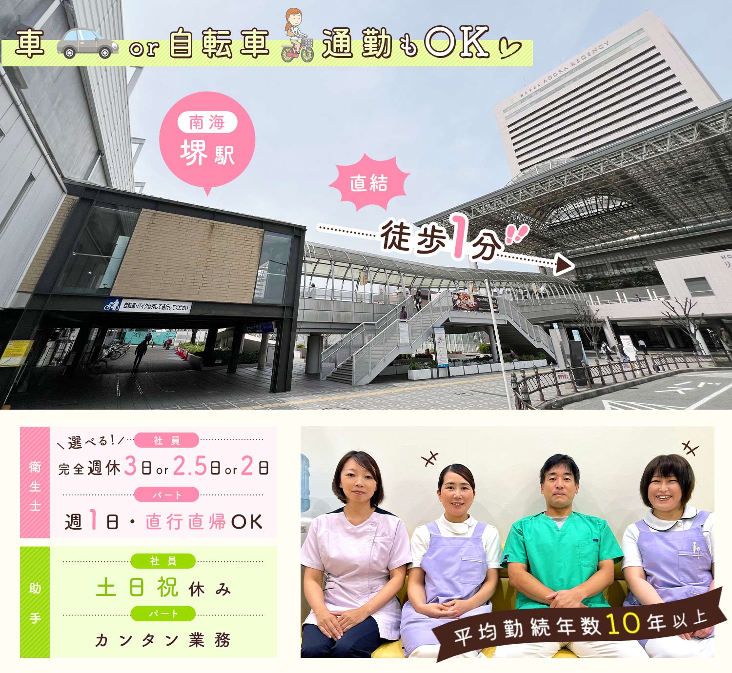| アクセス | [堺市堺区] 南海 堺駅から徒歩1分 □□□ #車通勤OK ※南海 堺東駅から堺駅まで運行のシャトルバスも利用可 |