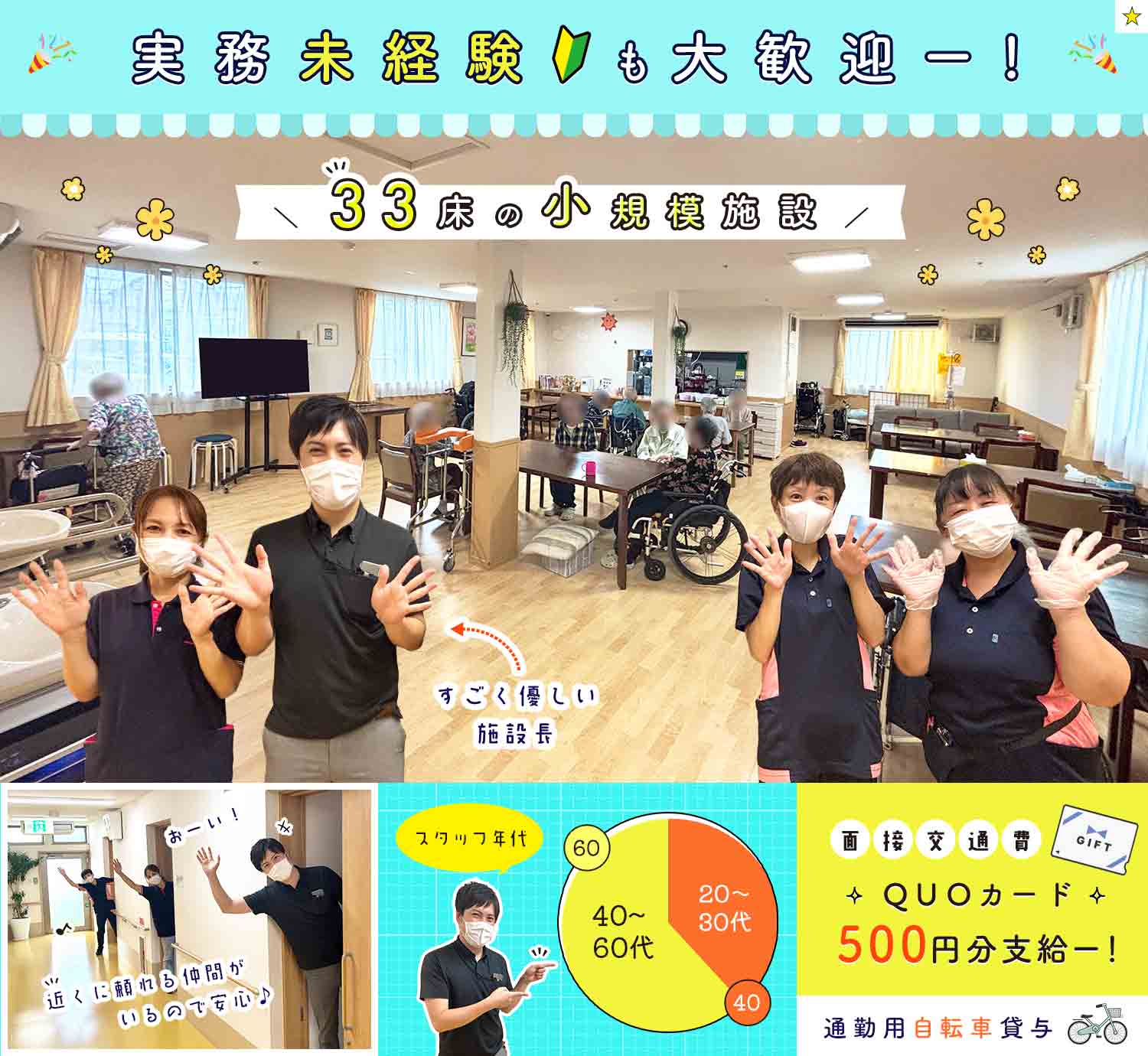 <小規模施設>駅~通勤用自転車貸与☆希望者は体験勤務OK