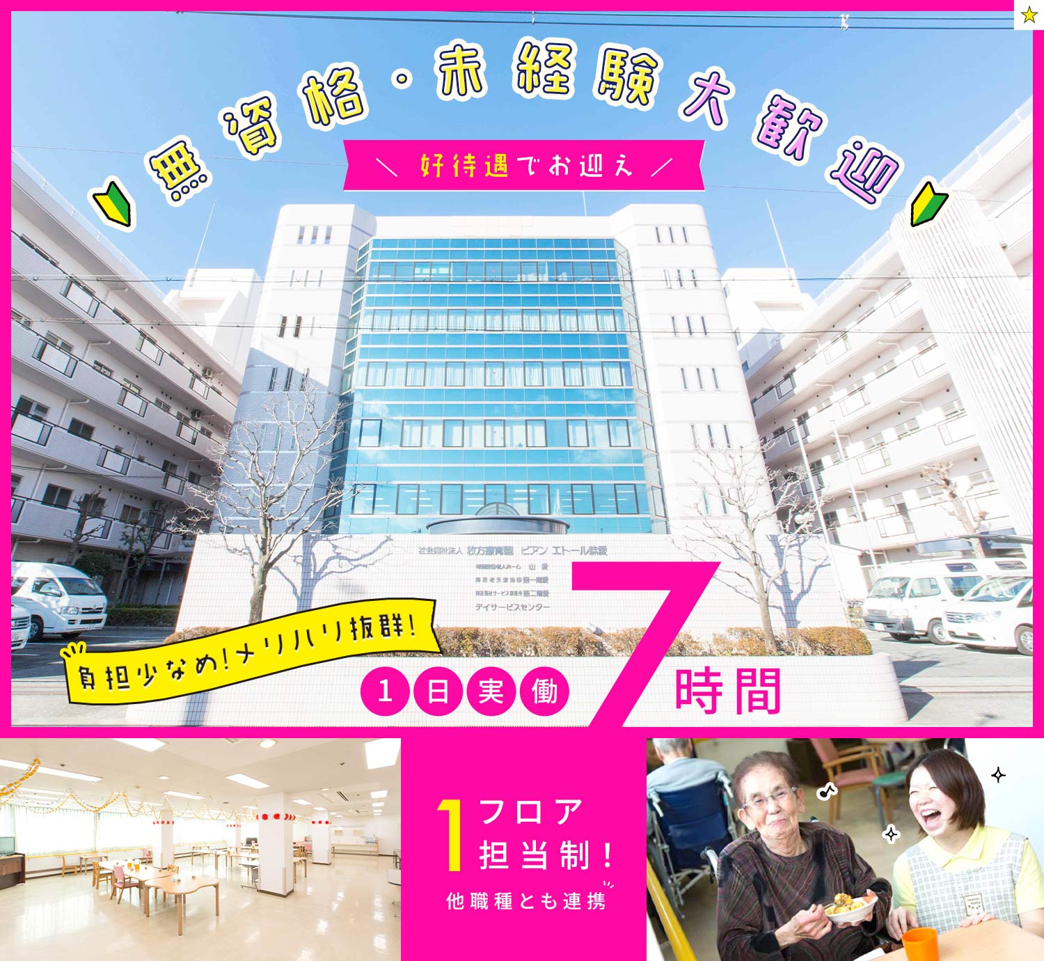 | 仕事内容 | 介護福祉士・介護職/ヘルパー[社] 食事・排せつ・入浴等、利用者様の生活全般のお世話。利用者様とのコミュニケーションの中から、その方の楽しみや日々感じていること、ご要望などを見つけ出し、安心してイキイキと過ごせるようにサポートしてください! ※フロア担当制 □□□ <ブランクがあっても安心の研修制度あり> 入社後は、新人さんにサポーター(教育担当の先輩)がつき、一人ひとり丁寧に研修を行います。当法人では未経験で入社した先輩も多く活躍しており、新人さんの目線に立って、わかりやすい指導を実践。ブランクがある方も安心してスタートできますよ! <他職種との連携もバッチリ> 理学療法士・作業療法士・看護師など専門スタッフと共に、利用者様の身体機能や体力の維持・回復に努めています。また、併設の診療所には医師、薬剤師、歯科衛生士など医療スタッフが常駐。急に体調が変化した時等でも迅速な対応が可能です。さらに、ケアについて医療面からの意見を得られるなど、スタッフが成長する機会も多数生まれています。  |