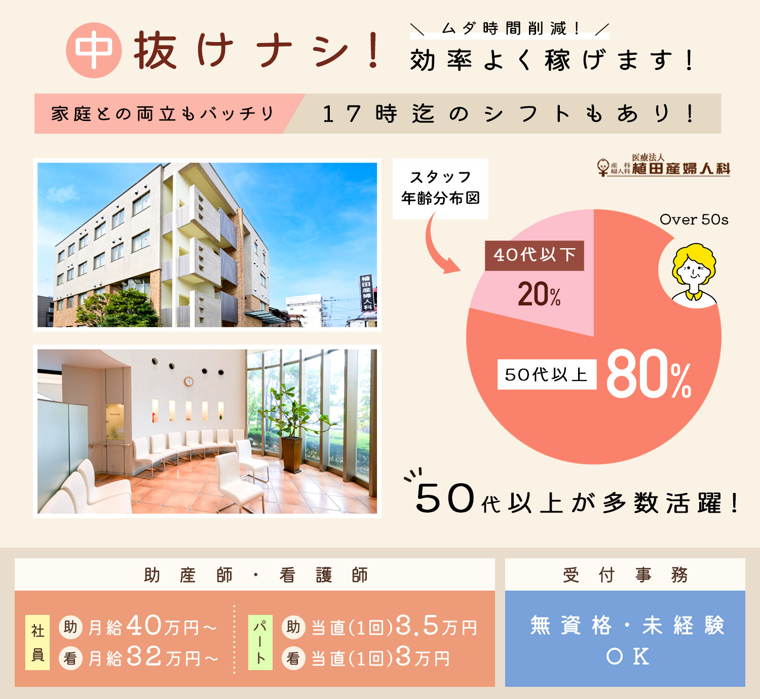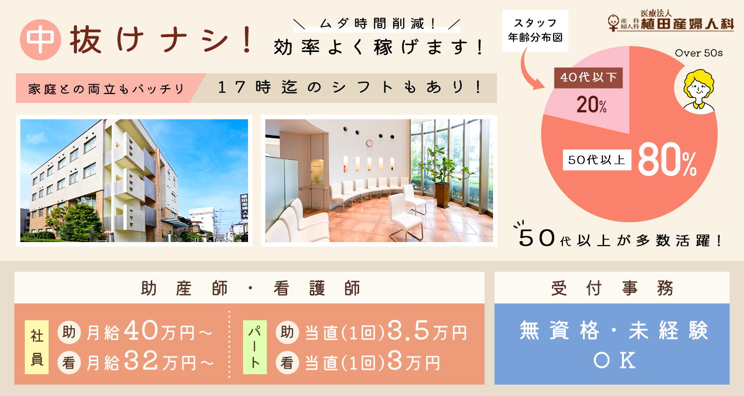 | 応募資格 | 助産師資格 □□□ ※年齢不問 ※経験者歓迎 ※ミドル・シニア歓迎 |