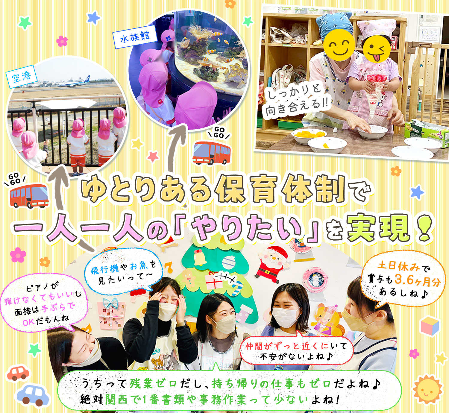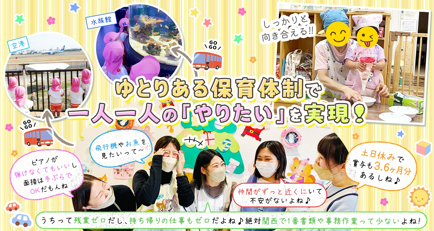 また、6~7名の保育士で対応しており、常にフォローし合える環境です!