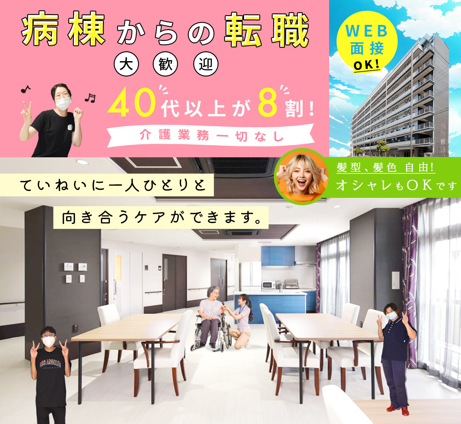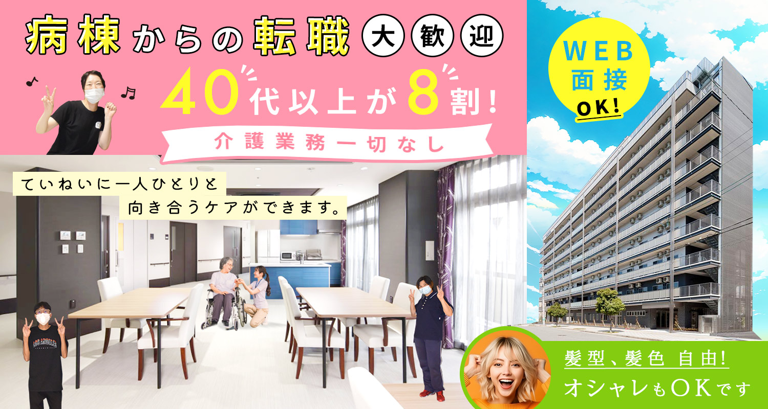 | 応募資格 | 准看護師 #ブランクOK #50代以上応募可 □□□ ※介護施設未経験OK!病棟などからの転職も歓迎 ※年齢不問、男女OK |