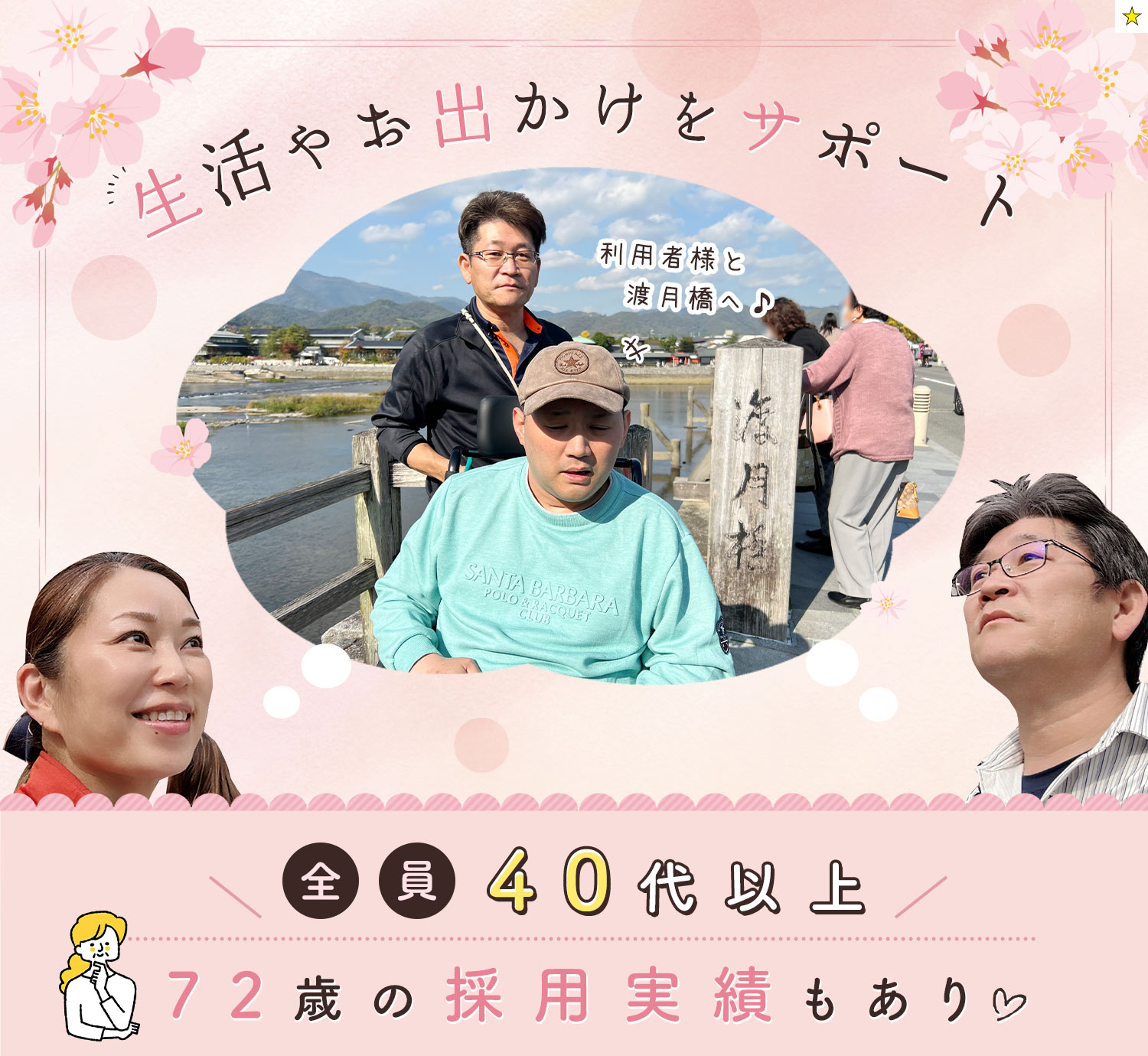 | 仕事内容 | 訪問介護ヘルパー/介護職[社] 身体・精神・知的障がいがある方などを対象とした訪問介護業務。 利用者様の自宅へ訪問し、身体介護(入浴・排泄・外出等)や生活援助(掃除・買物等)、移動支援などをお願いします。 ※料理は得意でなくても大丈夫 レンジで温めたり簡単なものばかりです。 ※利用者様は現在13~60歳の20名 ※移動手段はバイクまたは自転車メイン(その他、マイカー、電車などもOK)  |